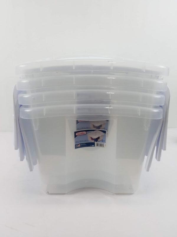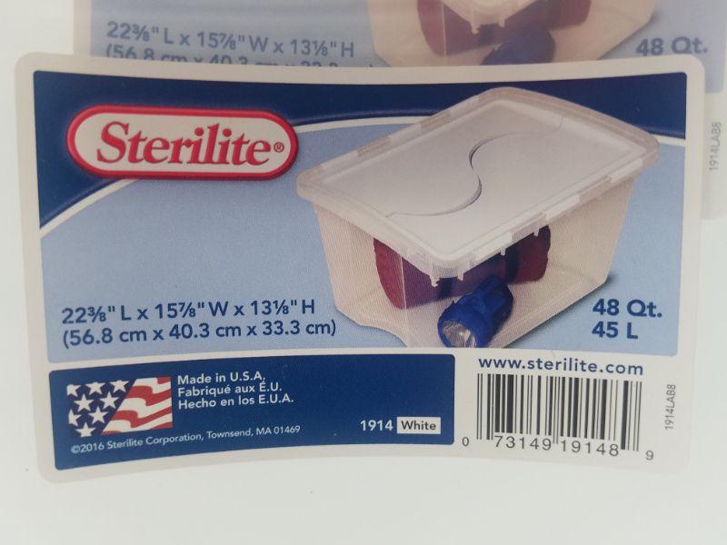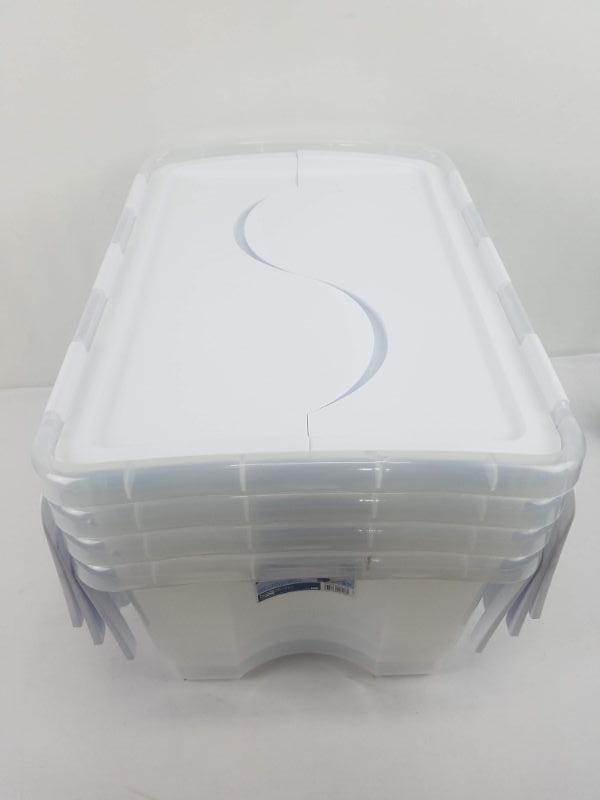 Sterilite Hinged Lid Bins, 48 qt, Qty 4, CLean & White - New