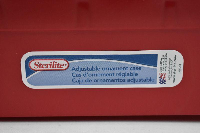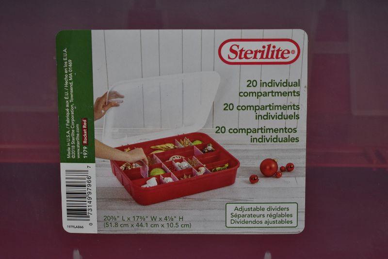 Sterilite Ornament Storage Box with 20 Adjustable Compartments, Red & Clear - New