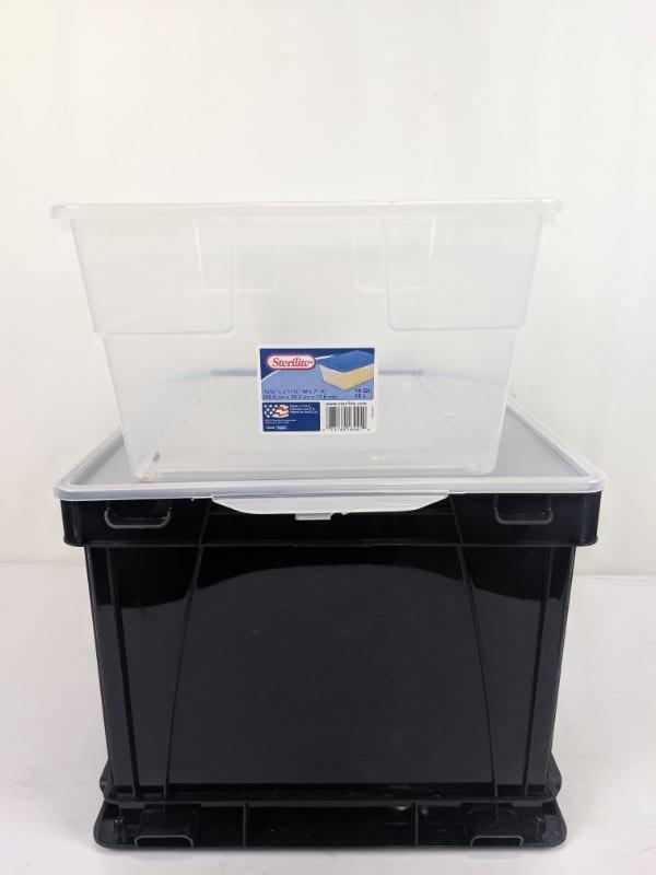 Sterilite Plastic Bin & Storex Box W/ Lid - Cracked
