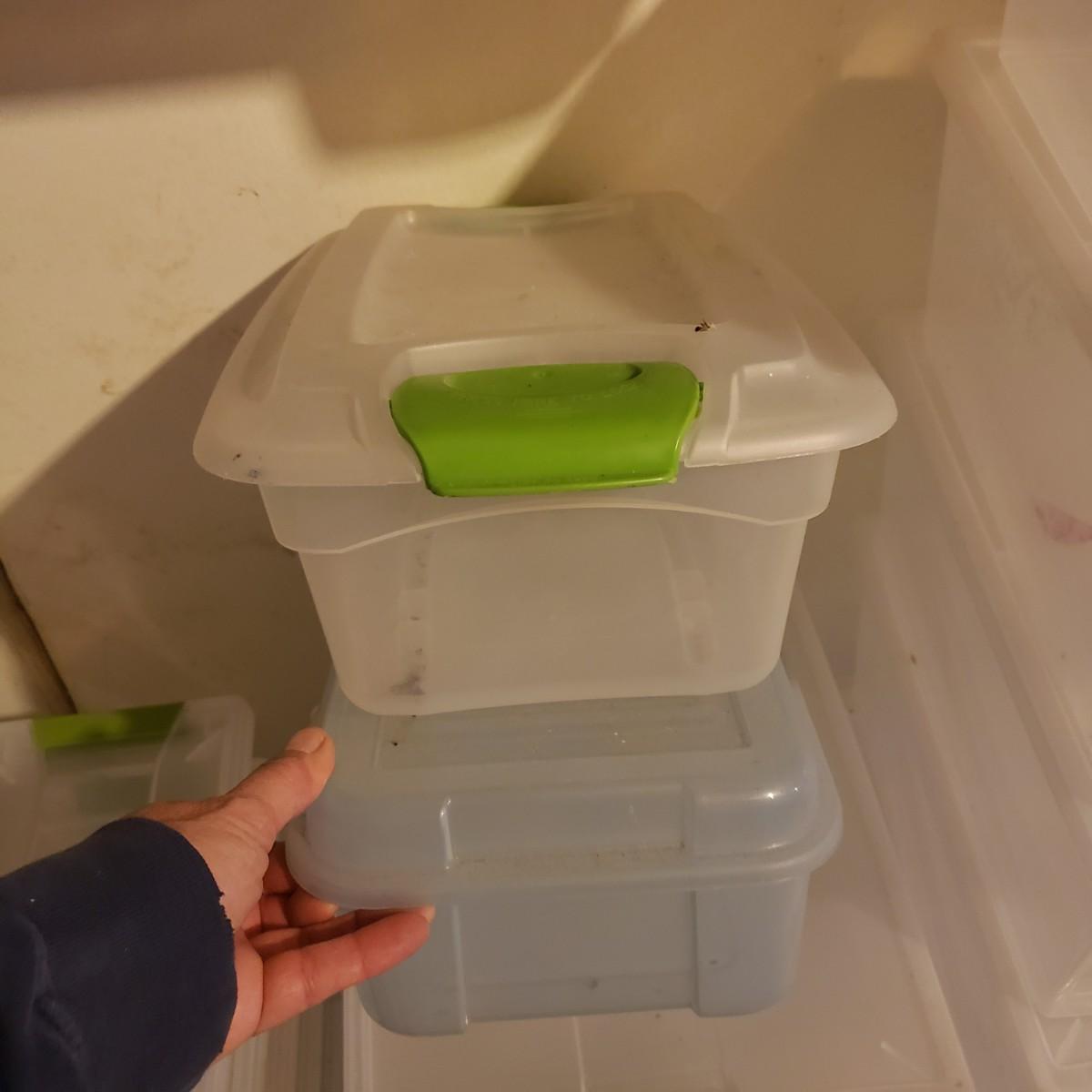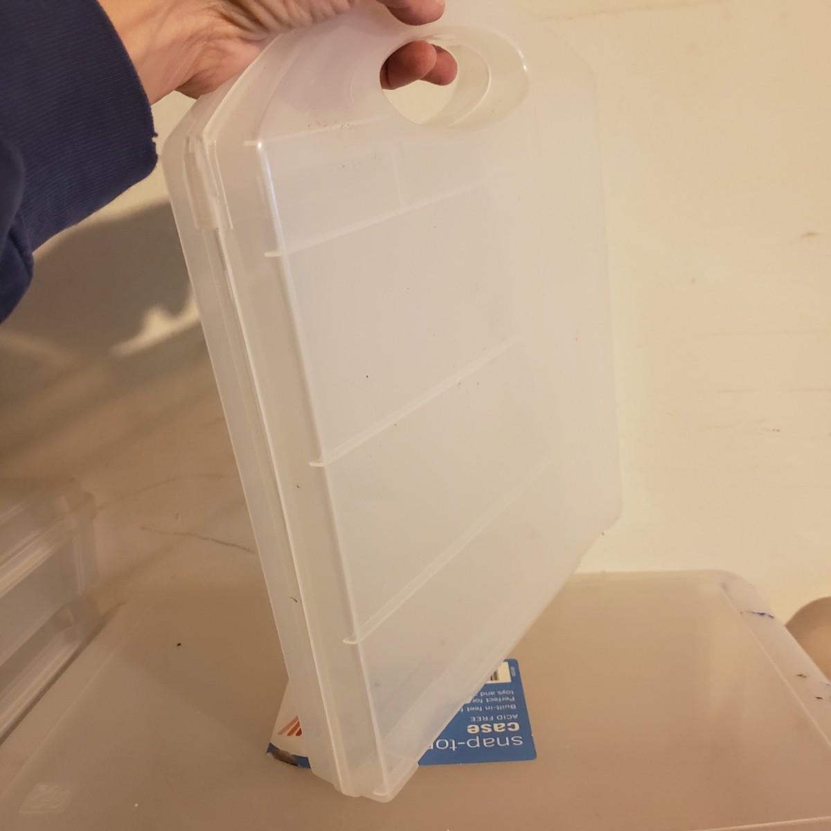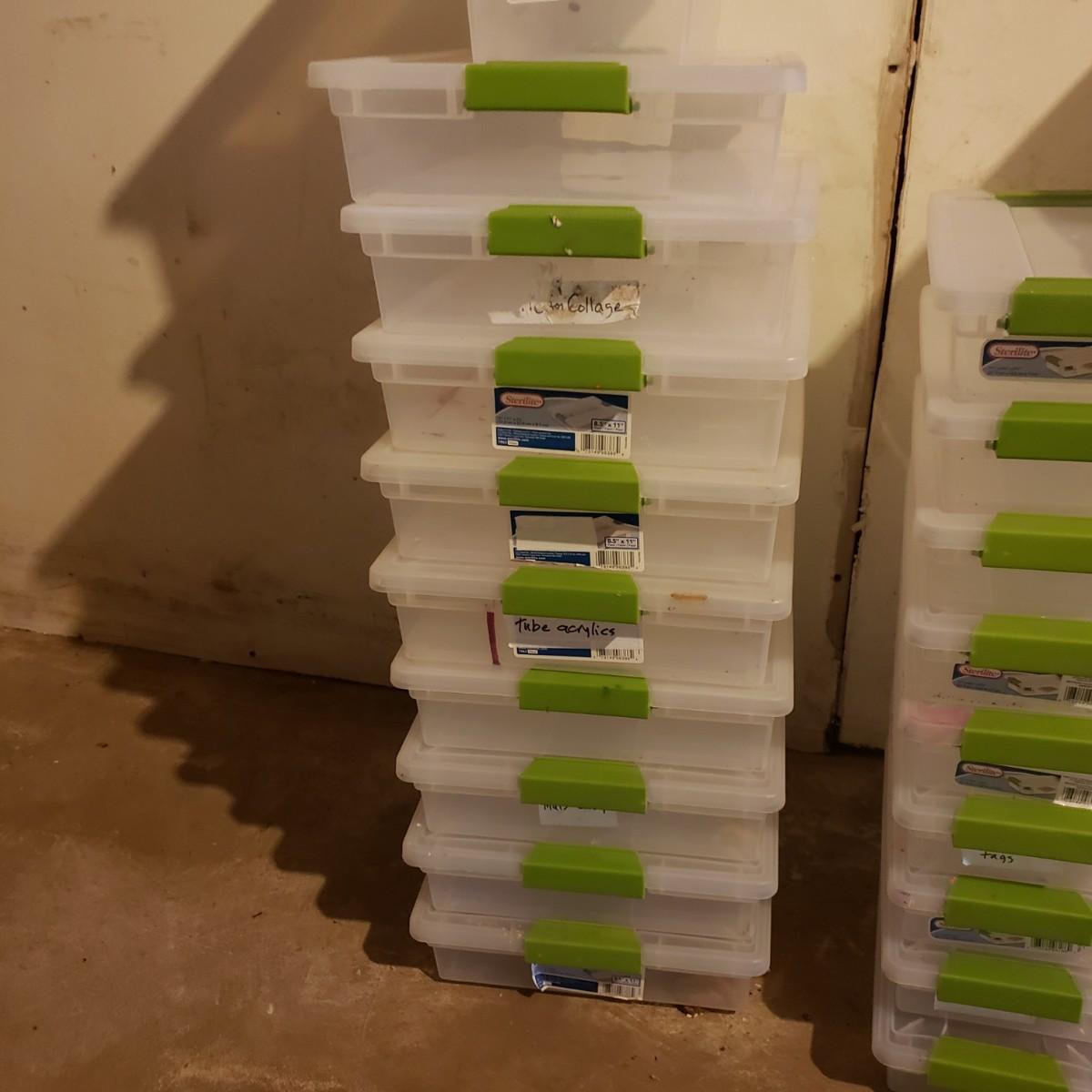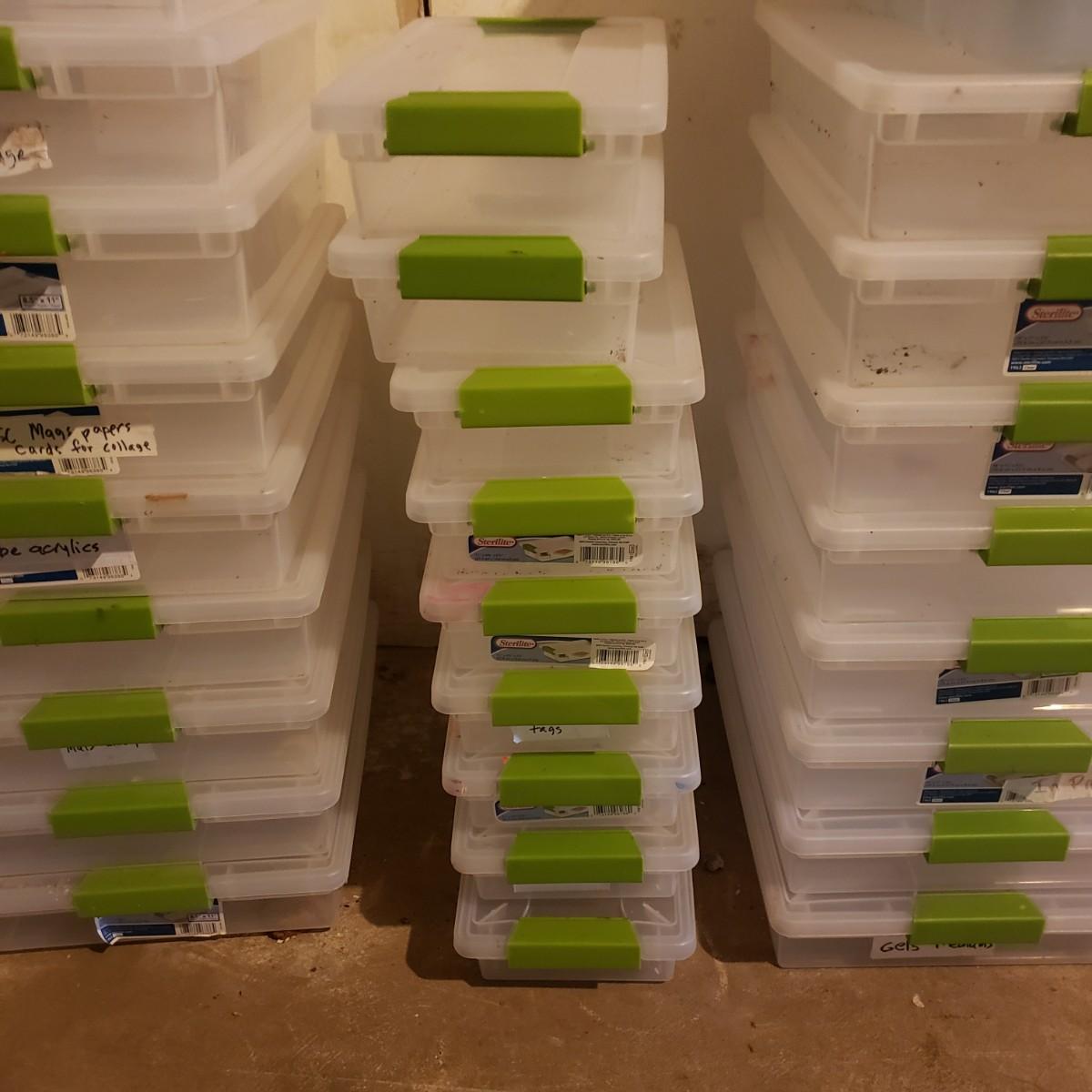 This 45 piece lot contains small mostly Sterilite clear storage containers. See pictures for quantities and sizes of each stack.