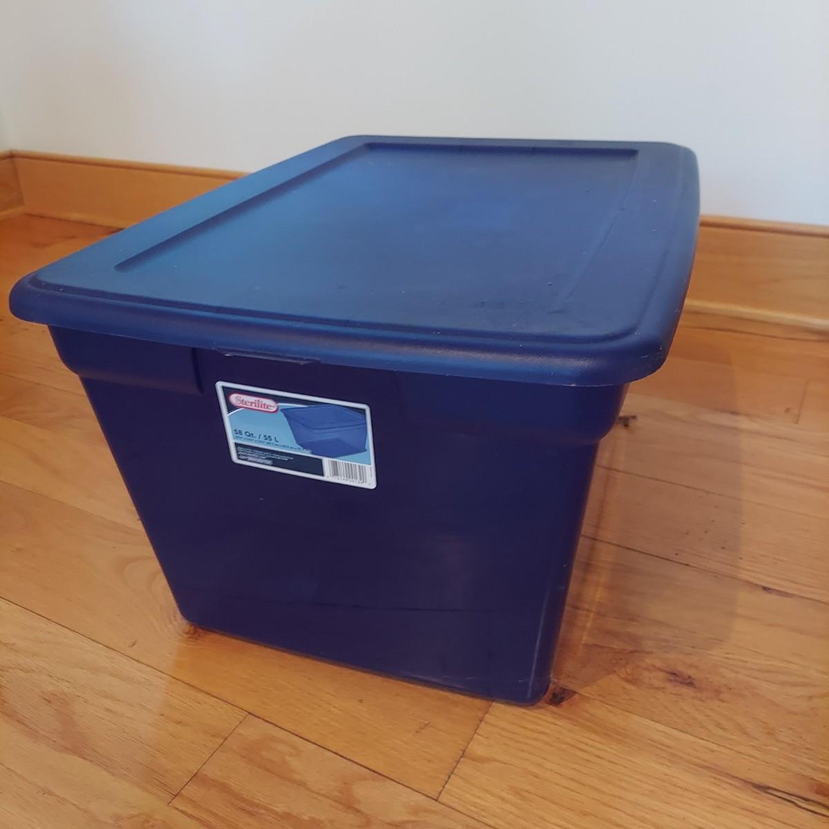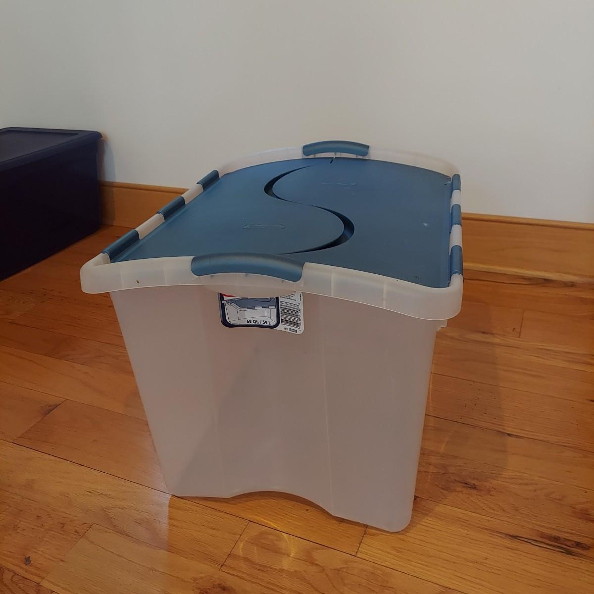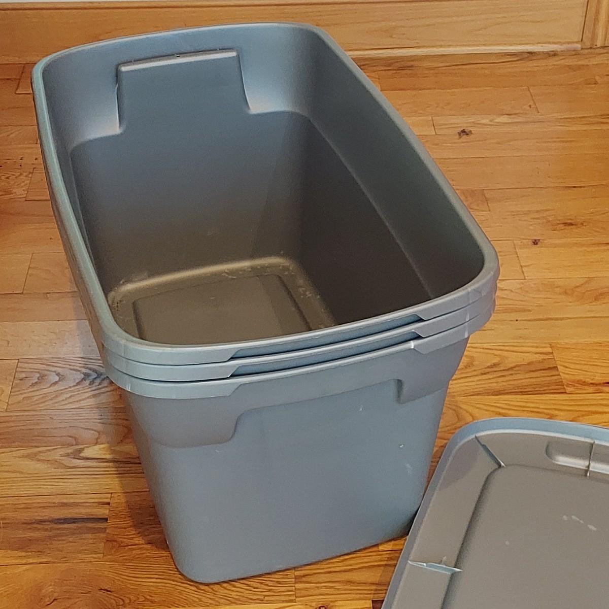 Lot includes 10 bins by Sterilite, Rubbermaid, & more. Some are clear plastic. Some are gray or blue. The large gray bins measure 31” x 19” x 17"H. Please see photos for details. Local Pickup Only