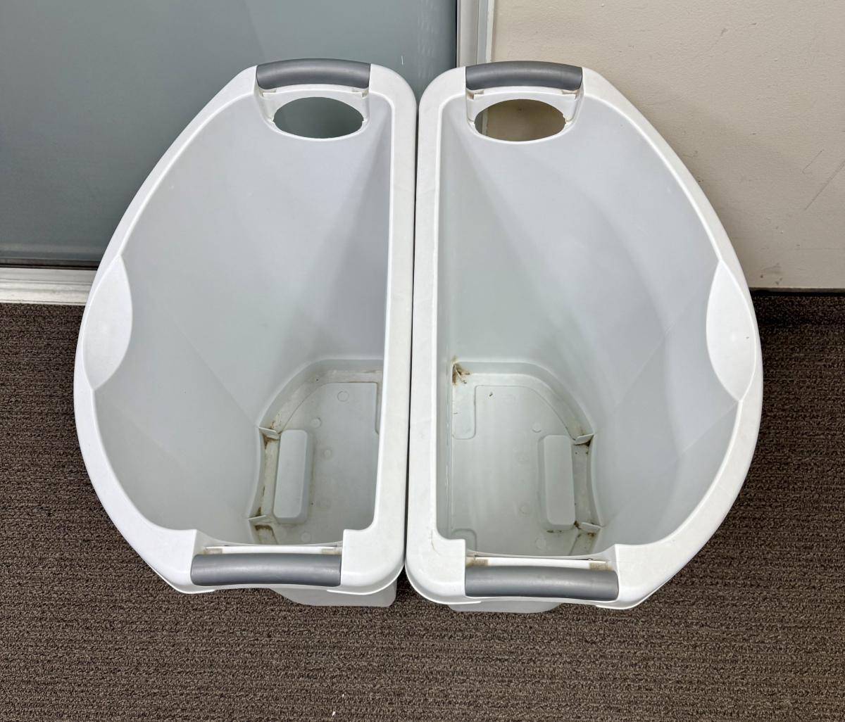 2 Tall Sterilite Laundry Hampers approx. 24"H x 21" W x 13" D. Good condition.