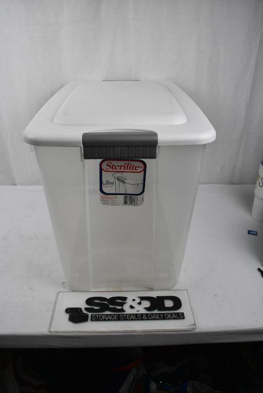 Sterilite Ultra Storage Bin, 92 qt, Clear with White Lid & Gray Handles