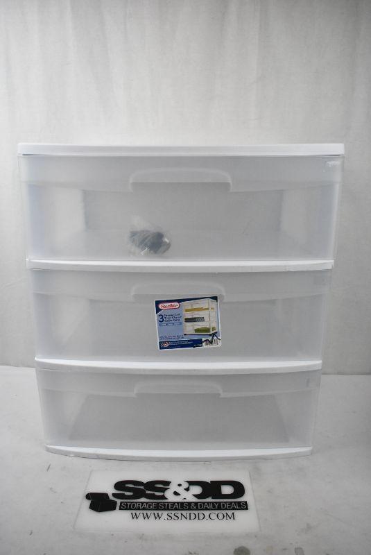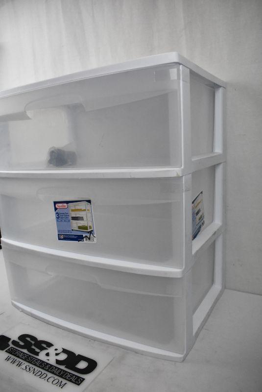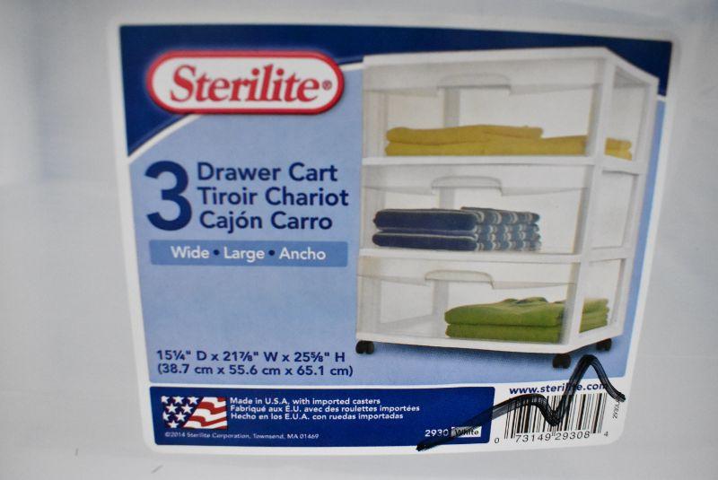 Sterilite Wide 3 Drawer Cart White. Scuffed