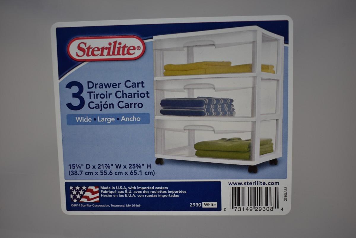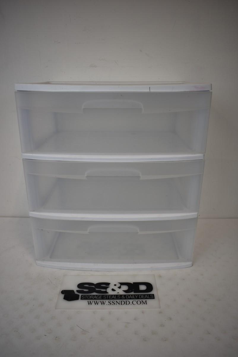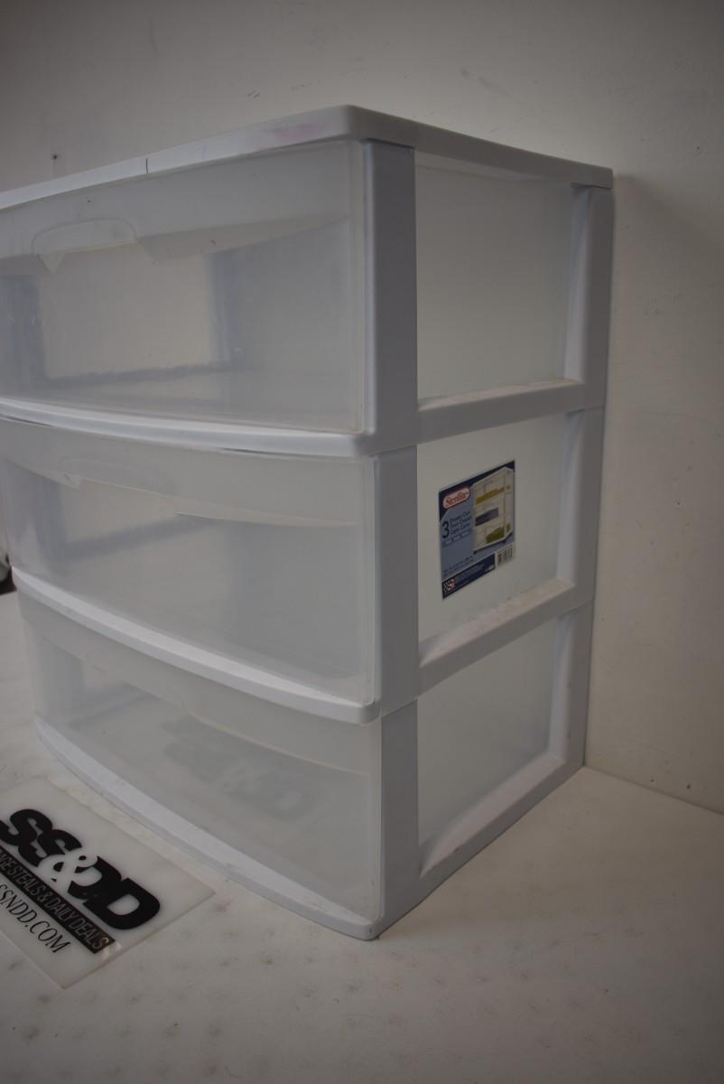 Sterilite Wide 3 Drawer Cart. Clear & White
