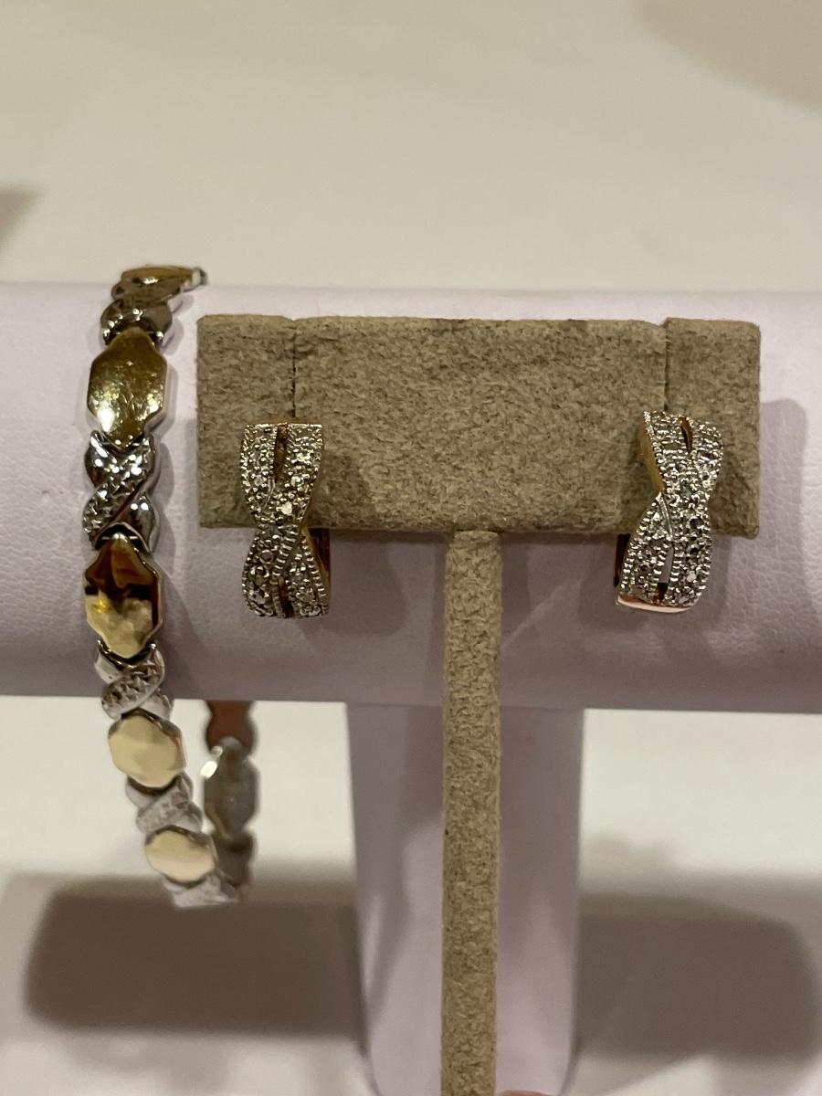 Sterling & 14k 1/11 bracelet & 925 earrings