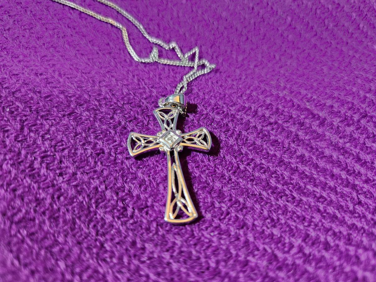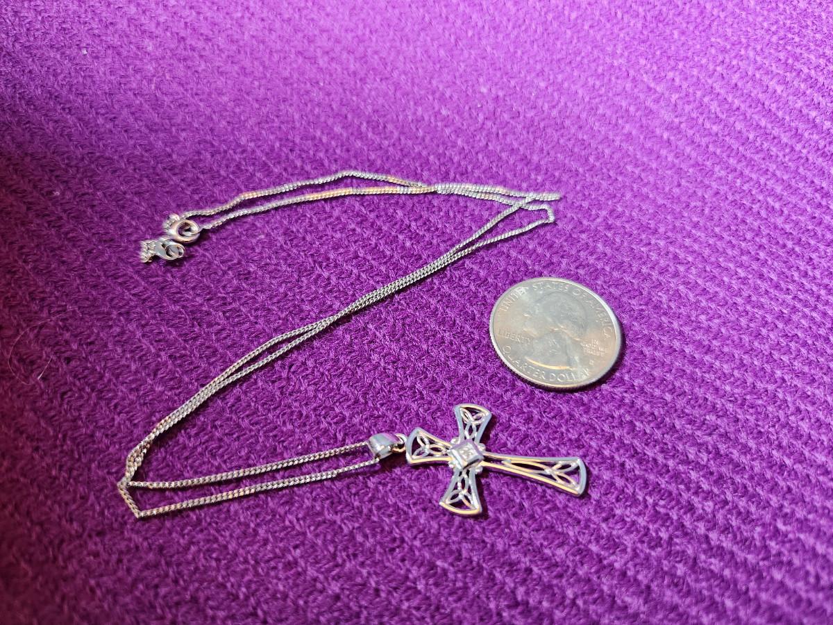 This auction lot is for a Sterling 18-Inch Woven Chain with Crucifix with Diamond Chip. Overall weight is about .102ozt. Nice for gifting or yourself.