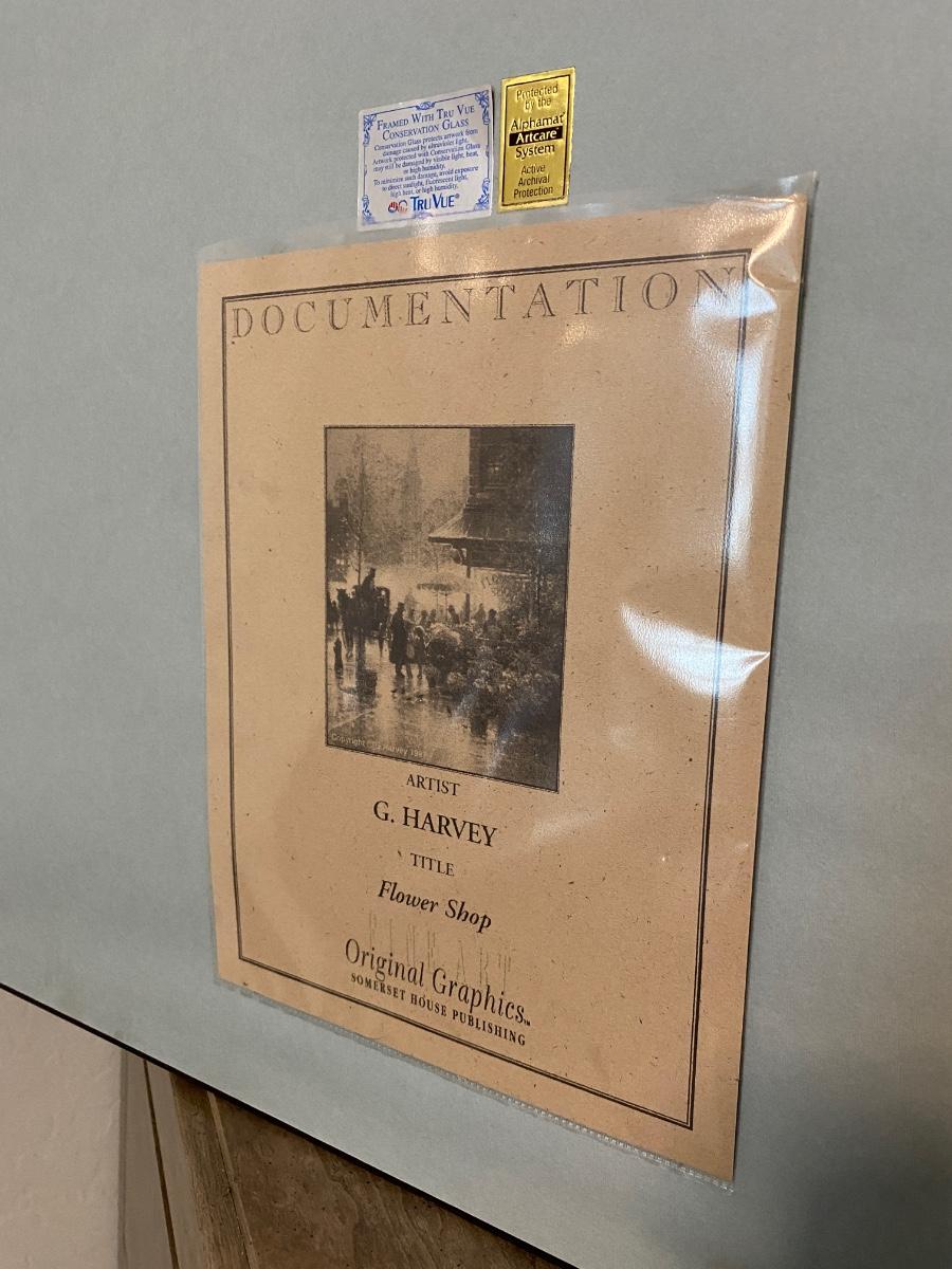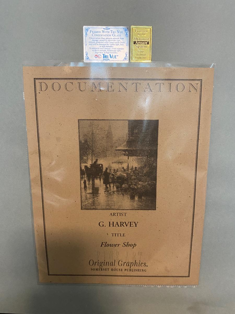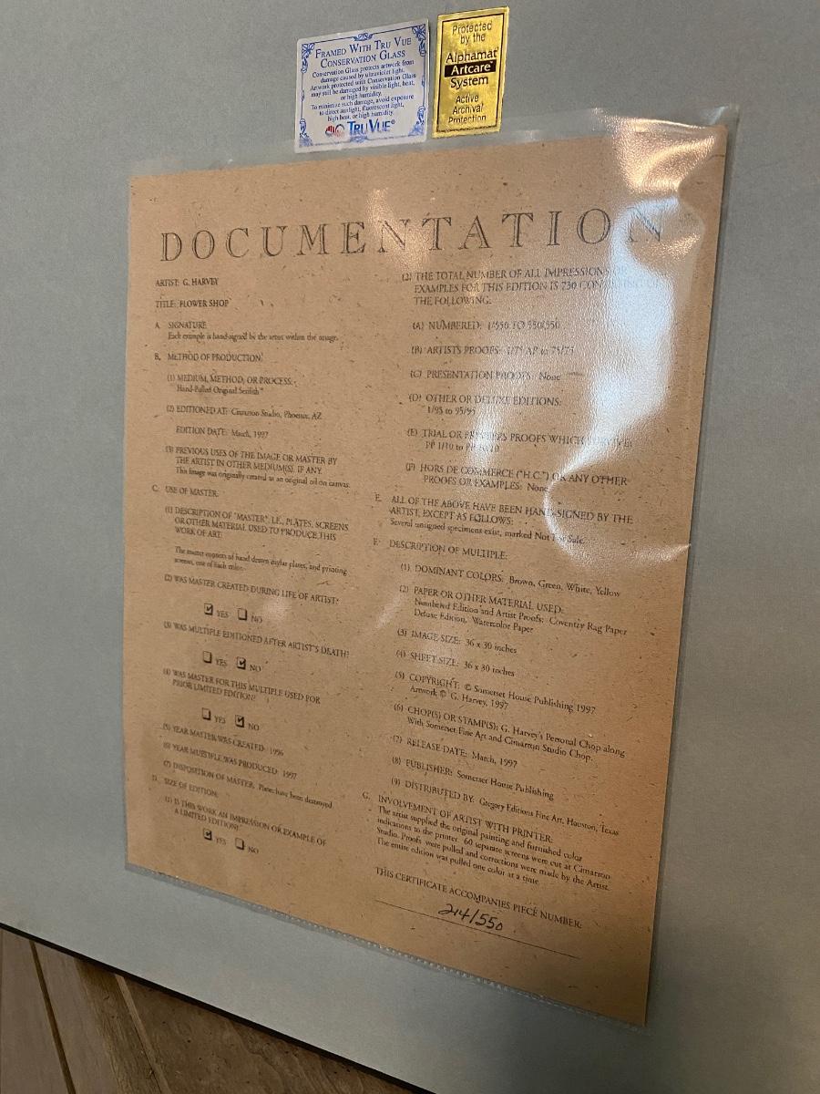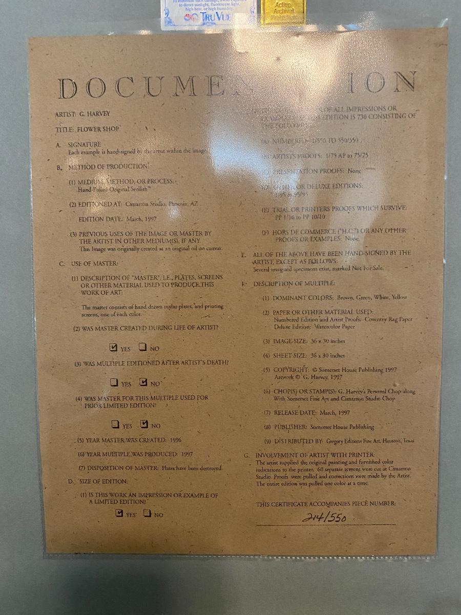 1997 Artist Signed "Flower Shop" by G. Harvey; Hand-Pulled Original Serilith. Limited Edition 214/550. Framed and includes artwork documentation