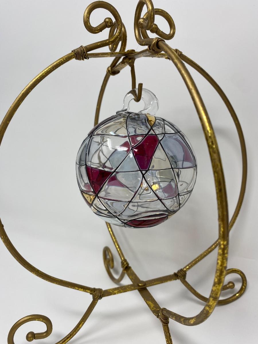 Vintage Small Decorative Hand-Blown Art Glass Ball Ornament