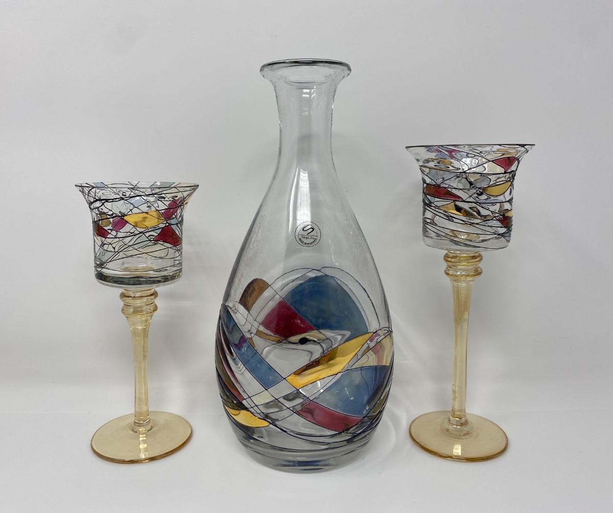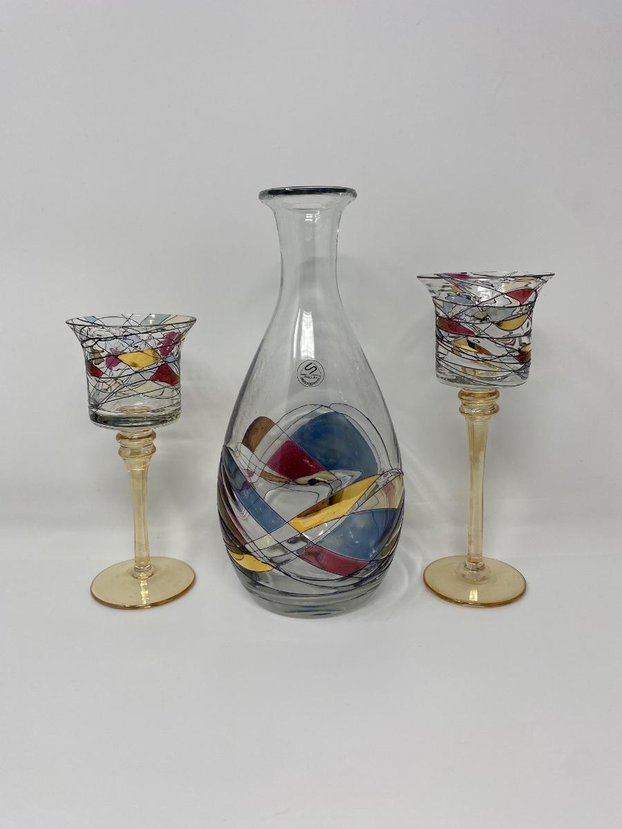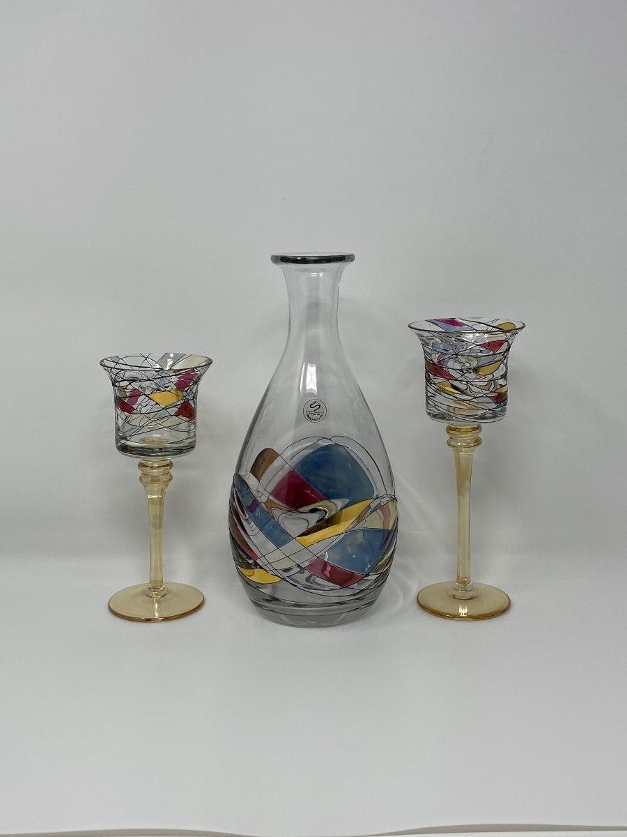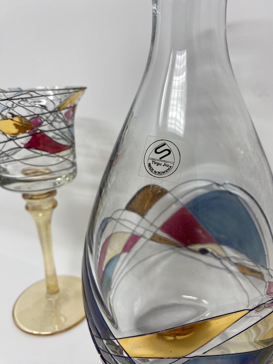 Vintage Cut to Clear Crystal Decanter and Glasses made in Romania