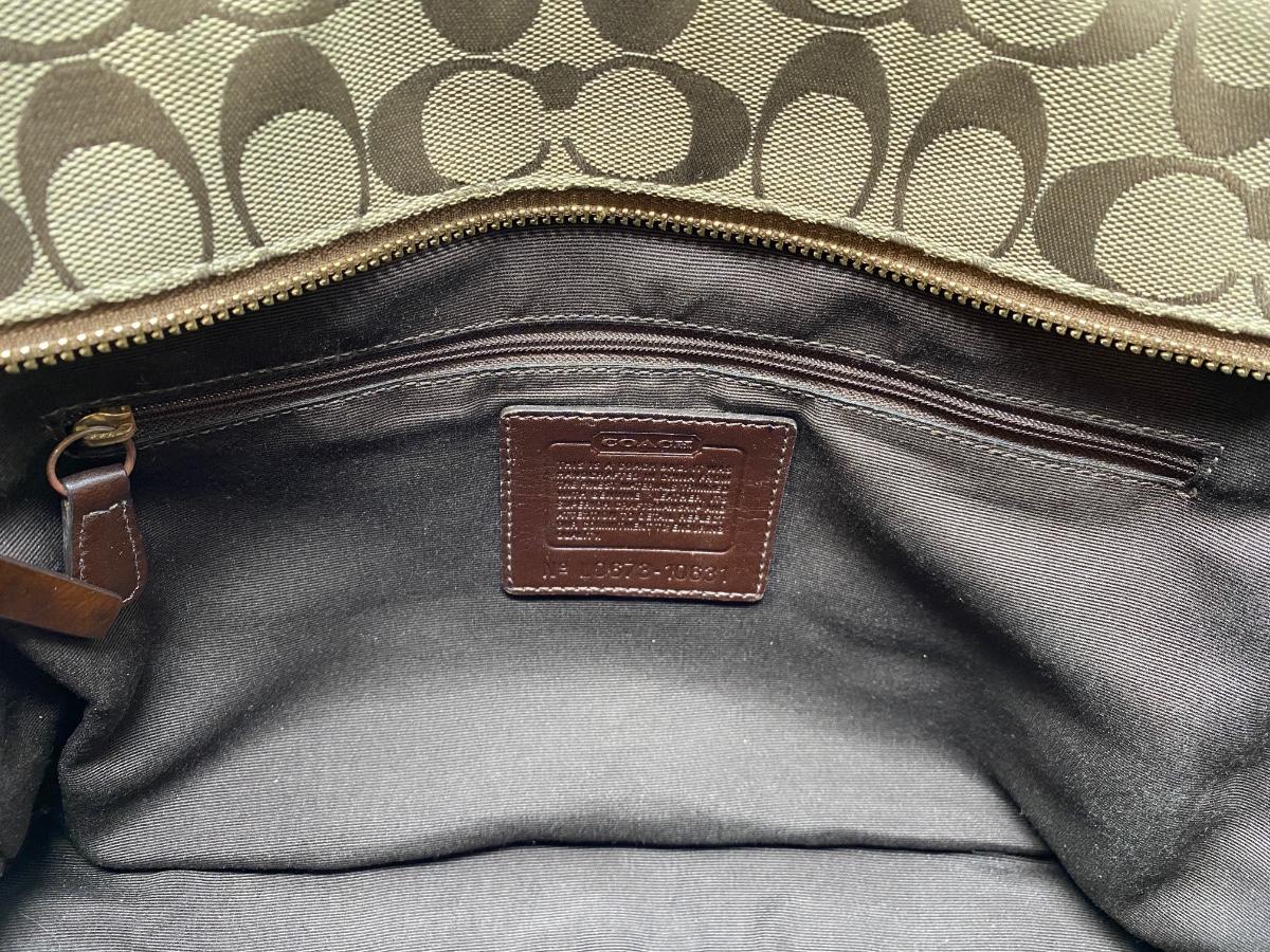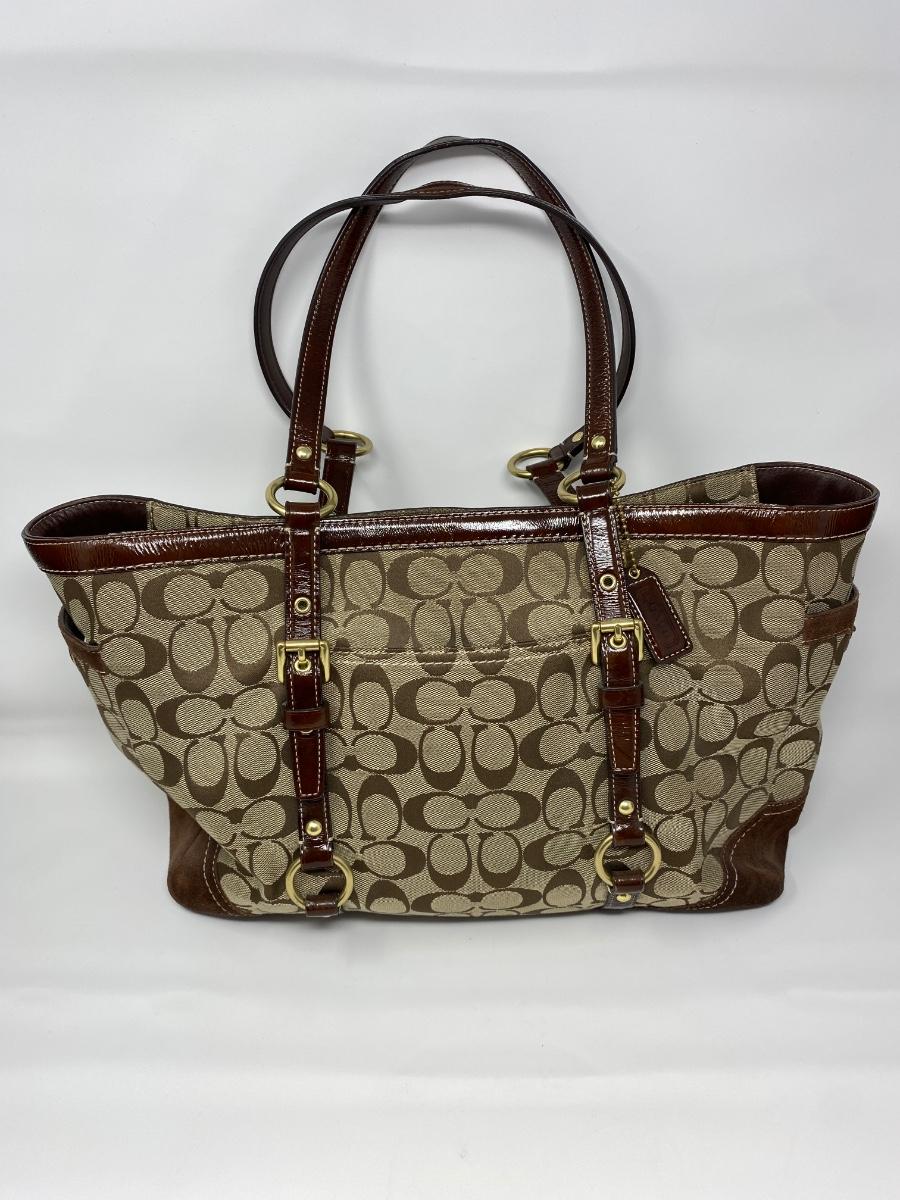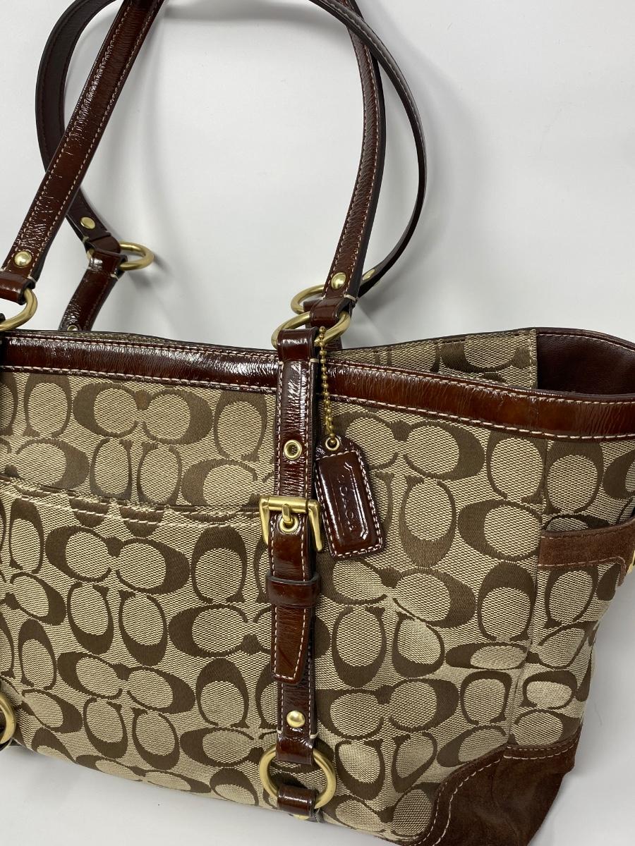 Vintage Brown and Tan Coach Purse. Lightly Used. Coach tag still attached. Interior verification tag along with serial number included in photos.