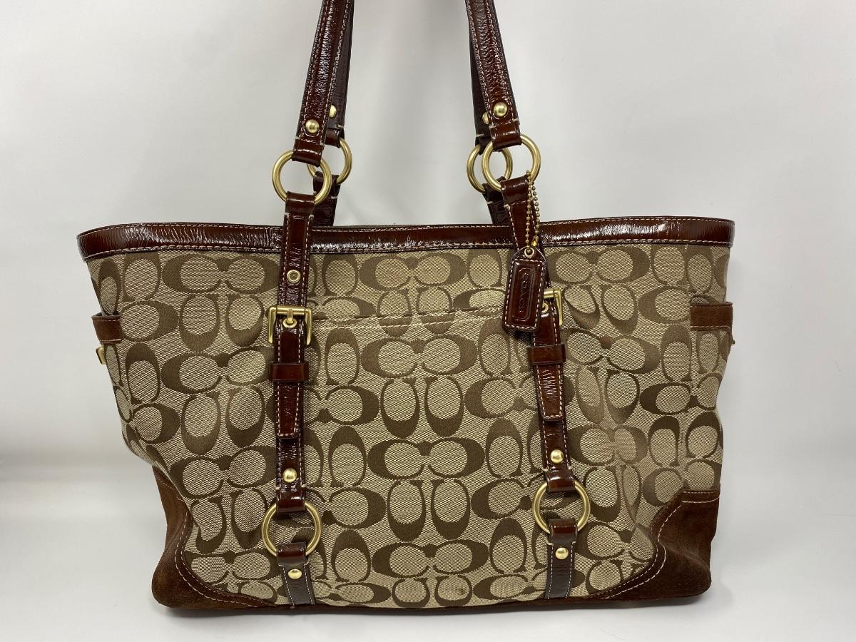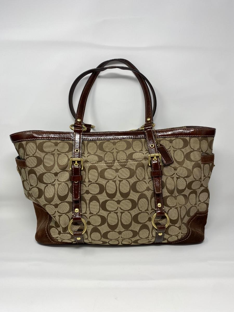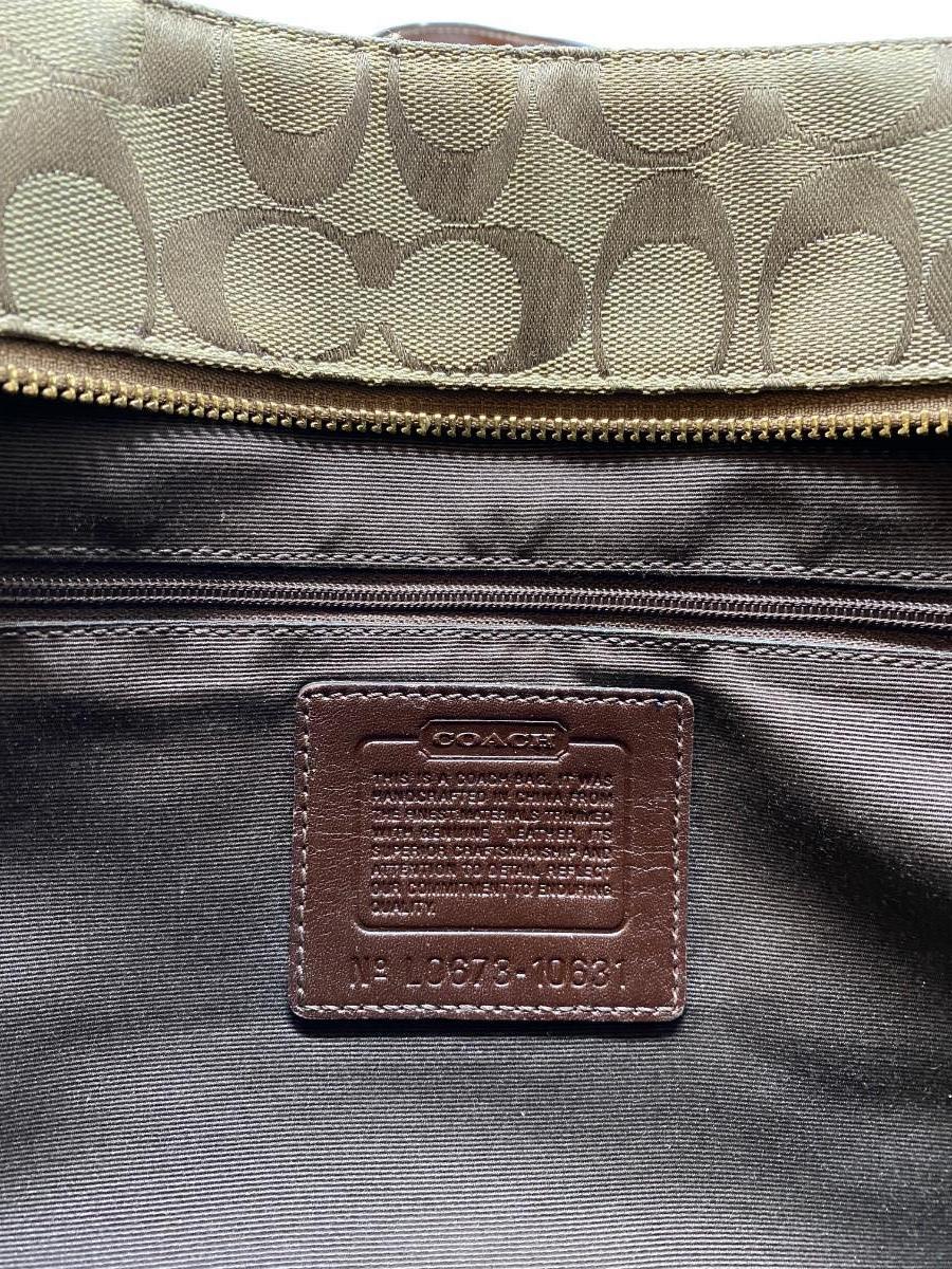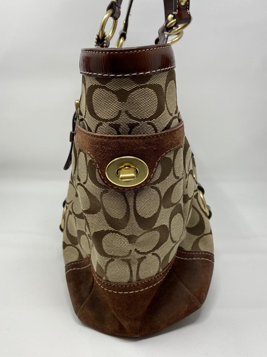 Vintage Brown and Tan Coach Purse. Lightly Used. Coach tag still attached. Interior verification tag along with serial number included in photos.