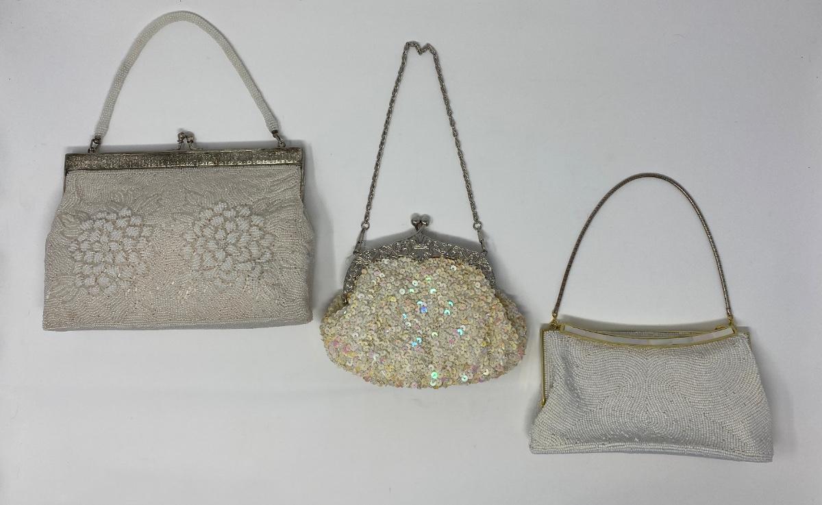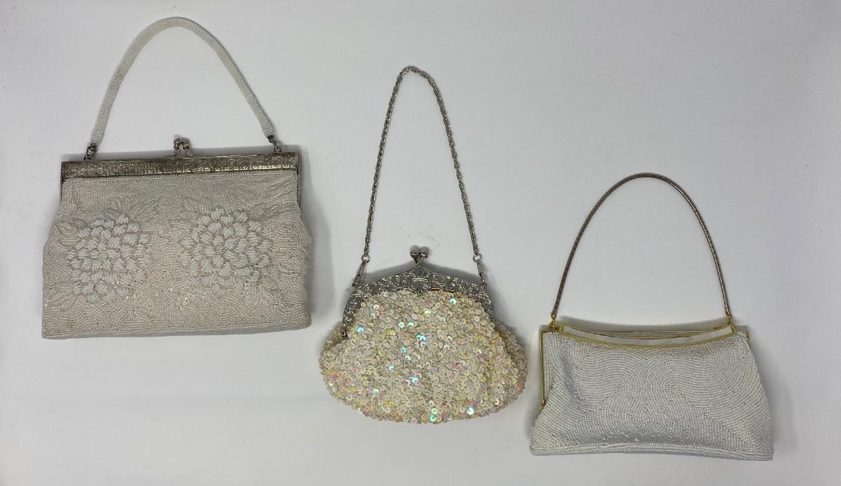 Vintage White, Ivory, and Gold Micro-Bead and Sequin Handbags