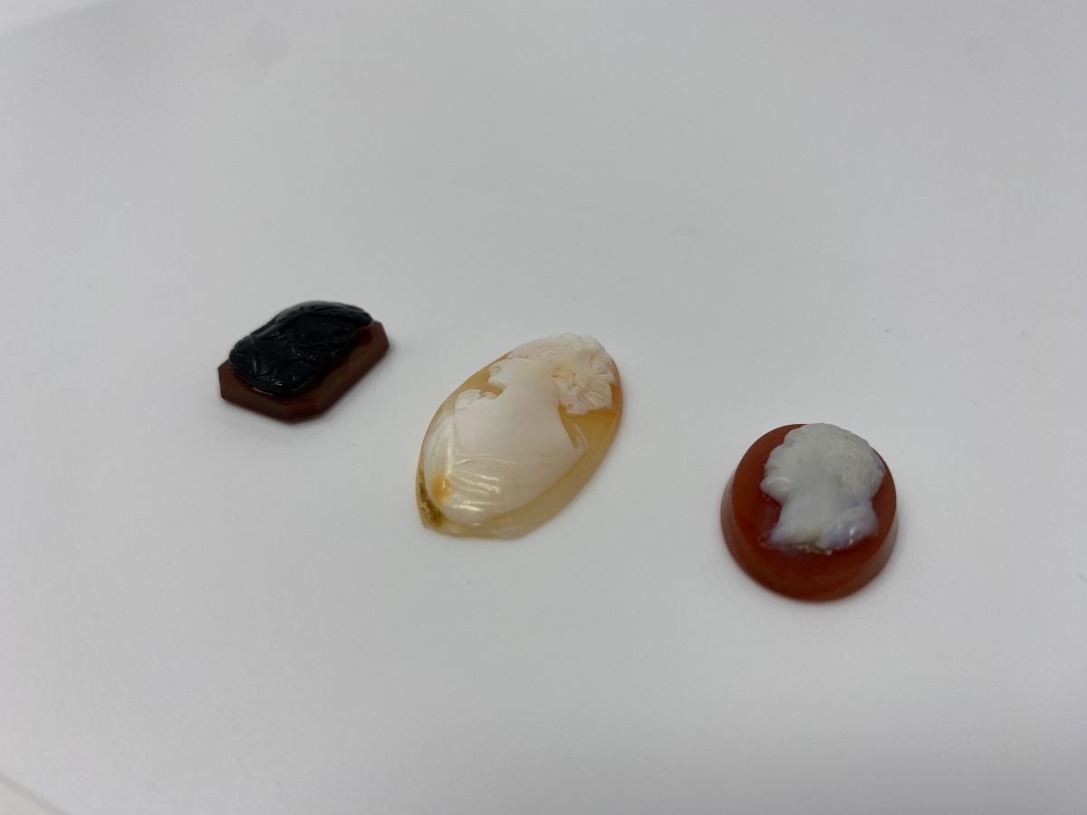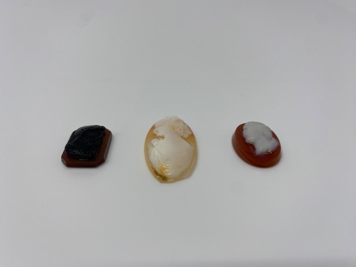 Three Loose Cameos. Authenticity of gem/stone/shell is not guaranteed as seller is not a jeweler/gemologist. Please conduct your own research before bidding.