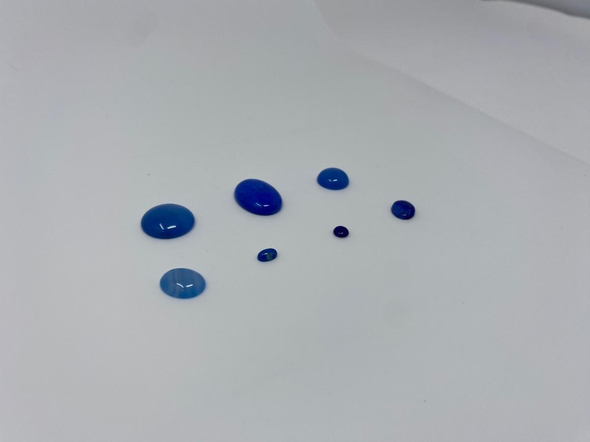 Collection of Dyed Blue Agate Cabochons. Authenticity of gem/stone is not guaranteed as seller is not a jeweler/gemologist. Please conduct your own research before bidding. Total weight of stones/gems is 33.35ct