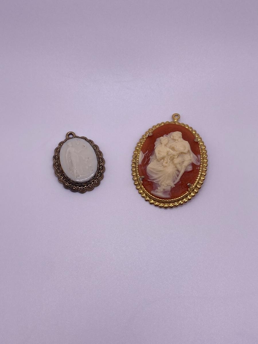 Pair of Cameo Pendants. Authenticity of gem/stone/metal is not guaranteed as seller is not a jeweler/gemologist. Please conduct your own research before bidding.