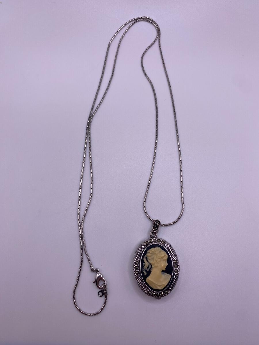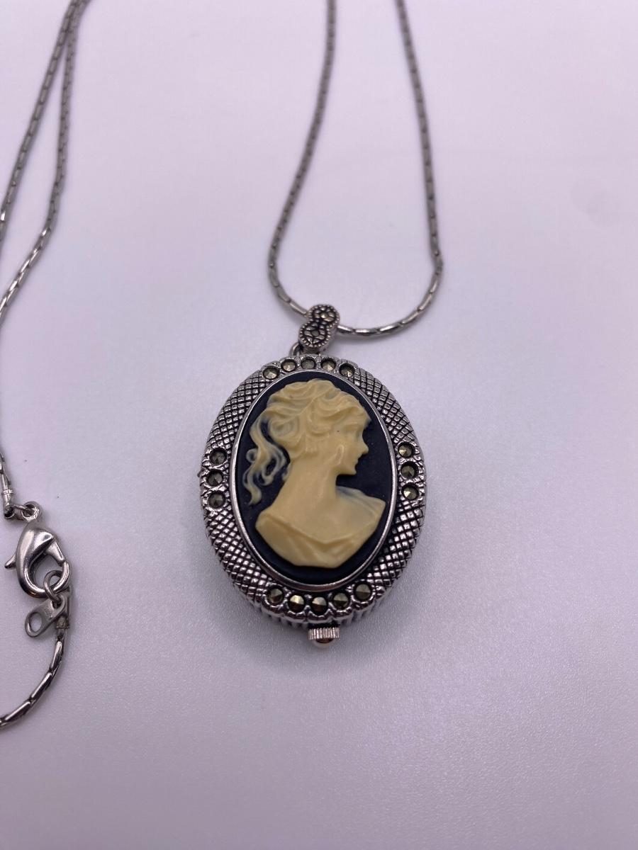 Necklace with Cameo Vanity Watch Pendant. Not tested for working status. Authenticity of gem/stone/metal is not guaranteed as seller is not a jeweler/gemologist. Please conduct your own research before bidding.