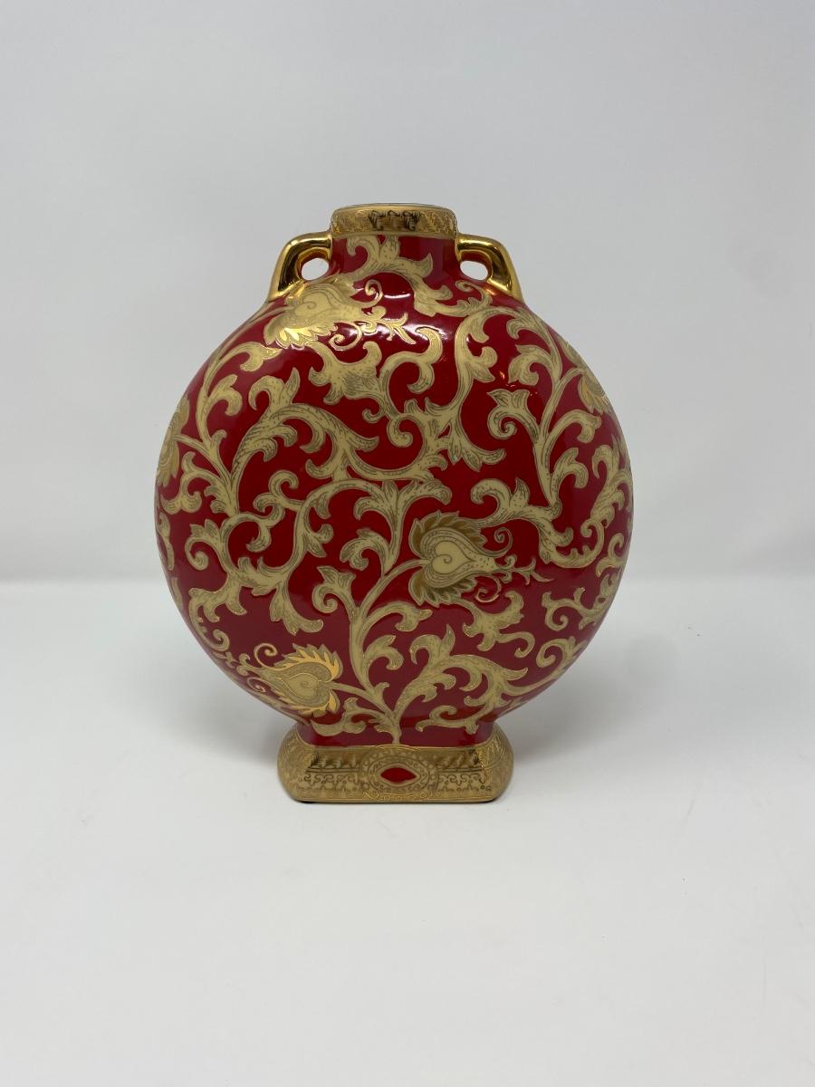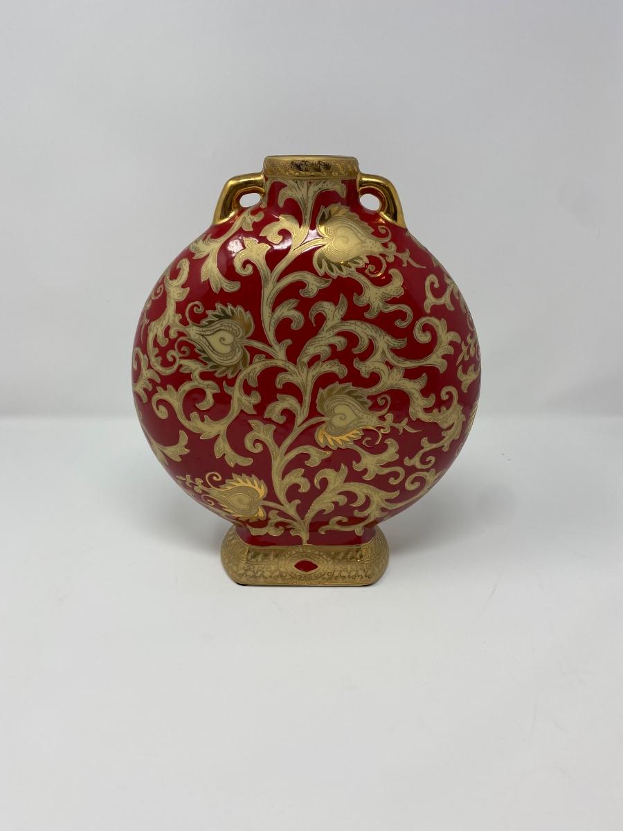 Hand-Painted Red and Gold Chinese Vase. Stamped on bottom