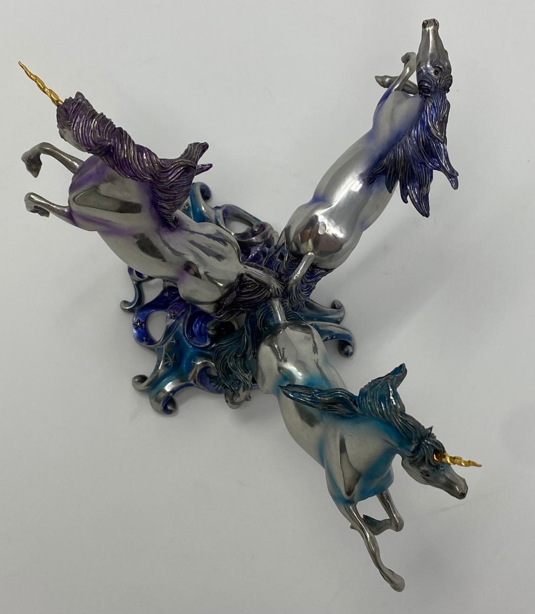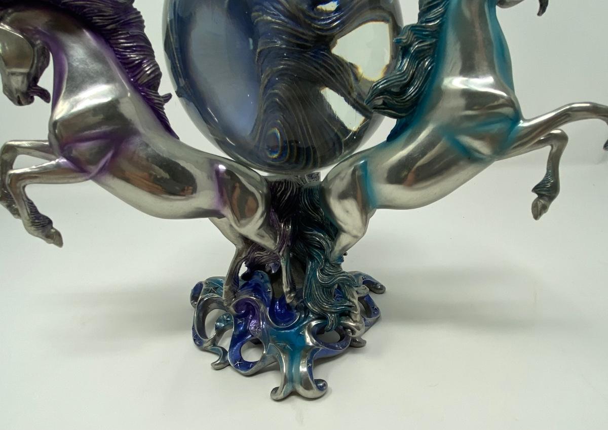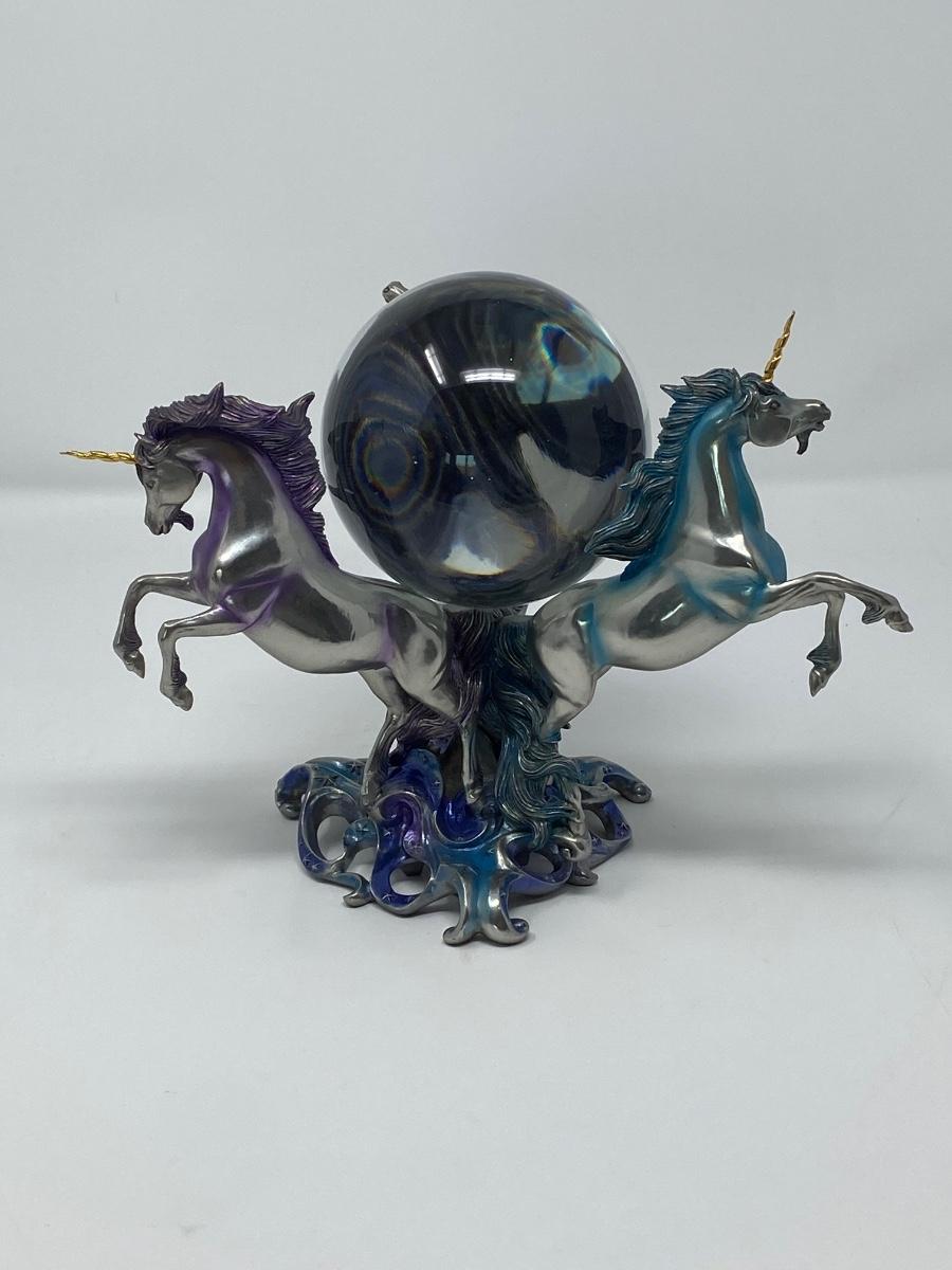 Franklin Mint "Unicorns of the New Age" Pewter Sculpture with Crystal Ball. There is an identified Unicorn that is missing and/or has a broken alicorn/horn.