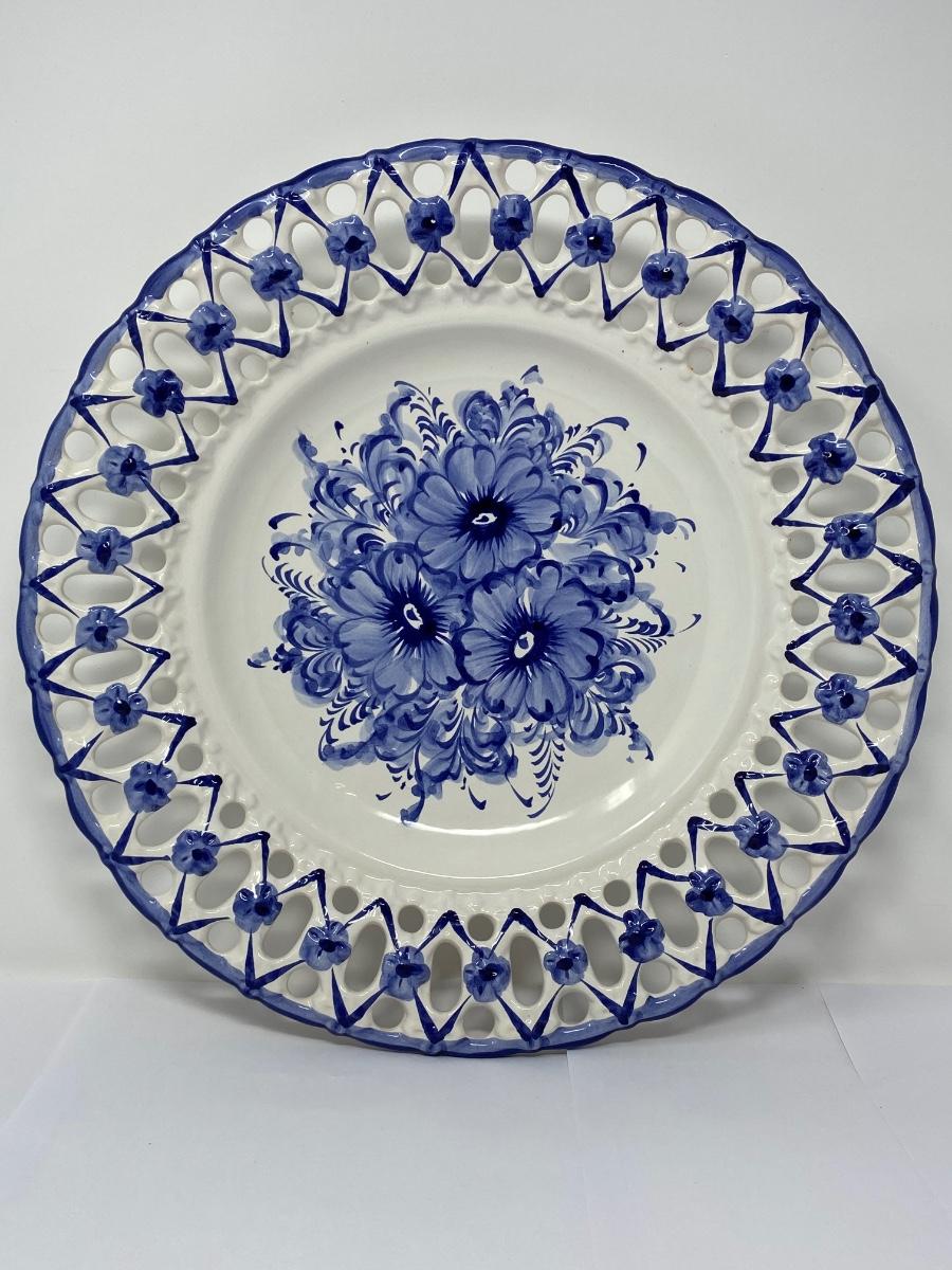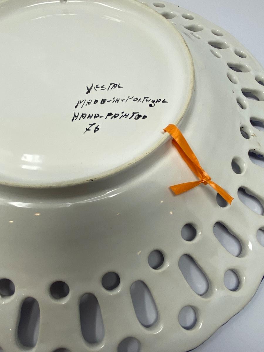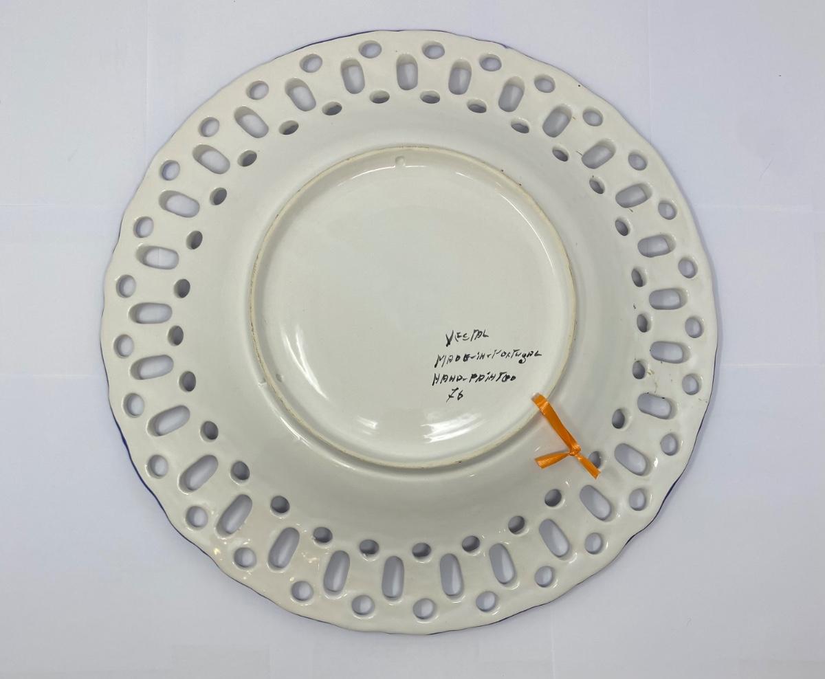 1960s+ Vestal of Portugal Tin Glazed Earthenware Reticulated Edge Blue and White Plate
