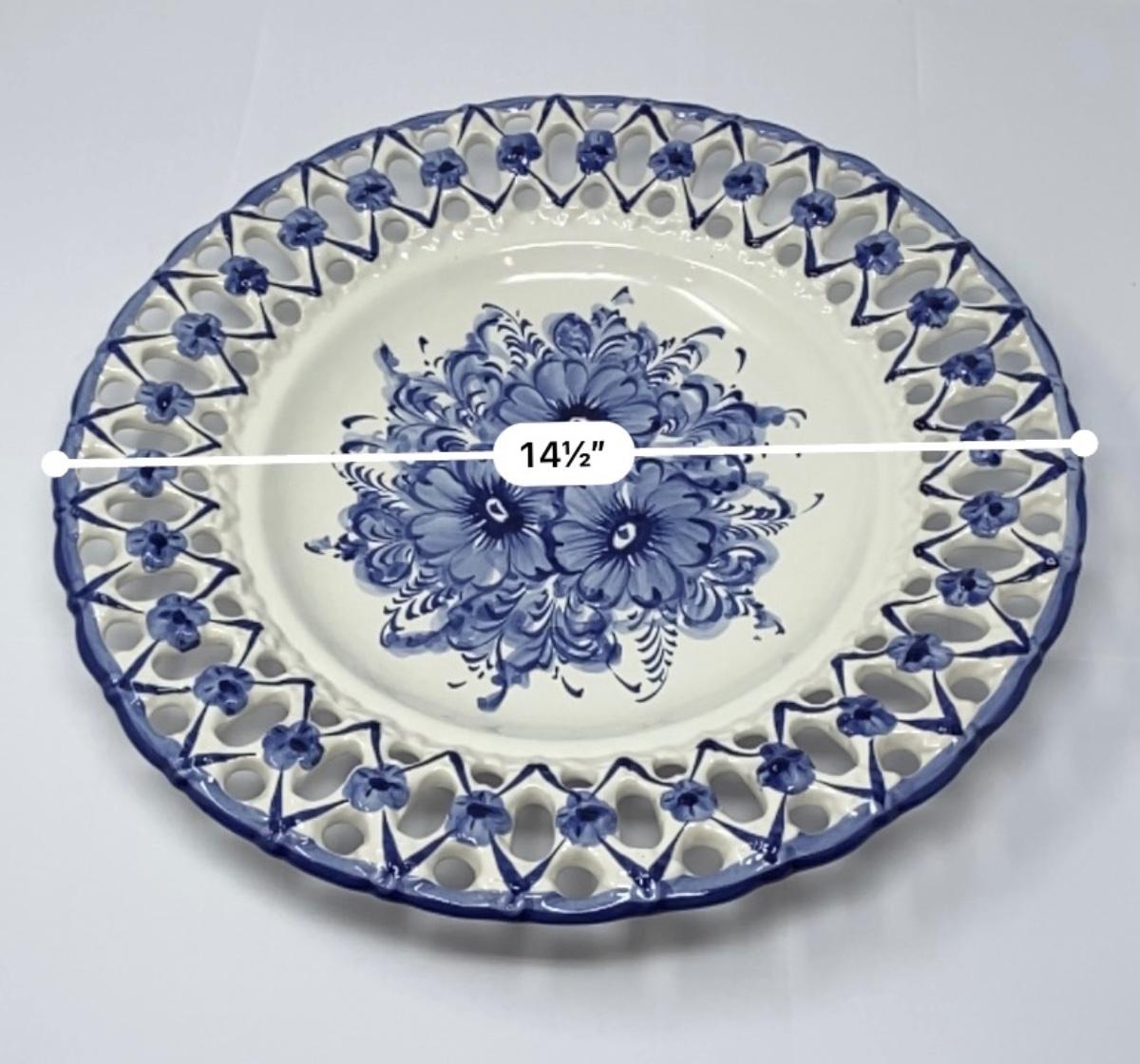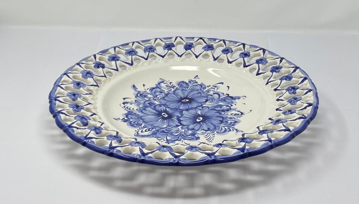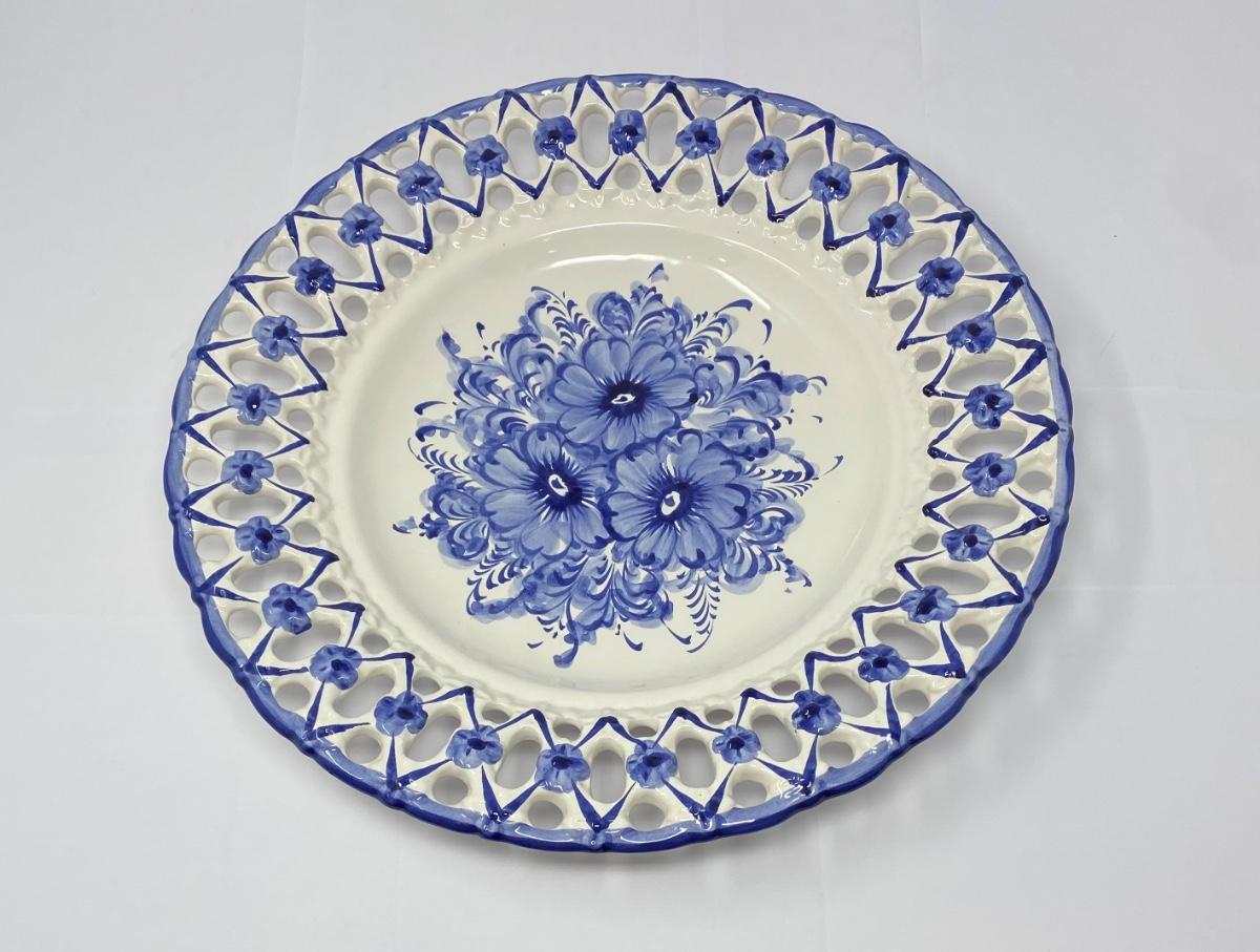 1960s+ Vestal of Portugal Tin Glazed Earthenware Reticulated Edge Blue and White Plate