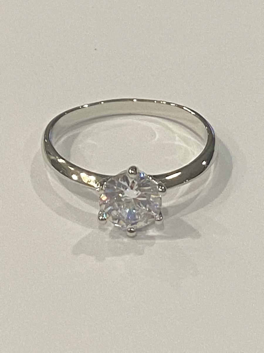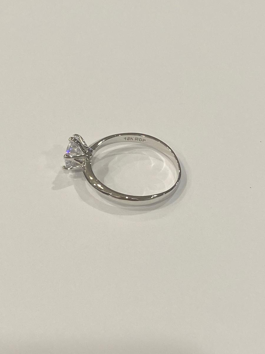 18K Rolled White Gold Plated Engagement Ring. Marked 18K RGP