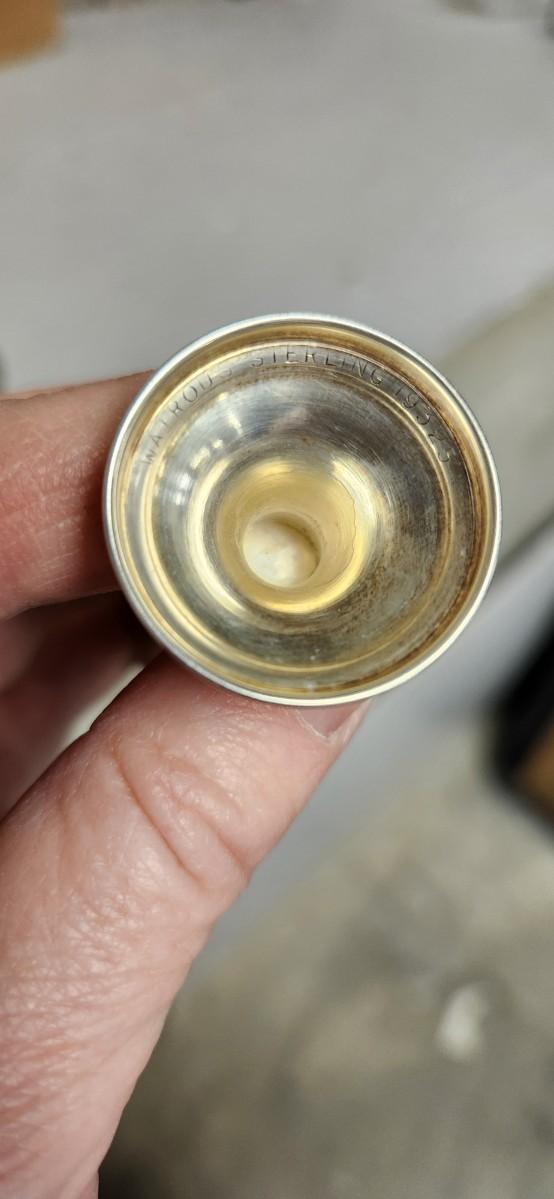 4 fantastic Watrous Sterling Ports. Hallmarked Watrous Sterling 19325 Height: 3" Width at mouth: 1 ¼”