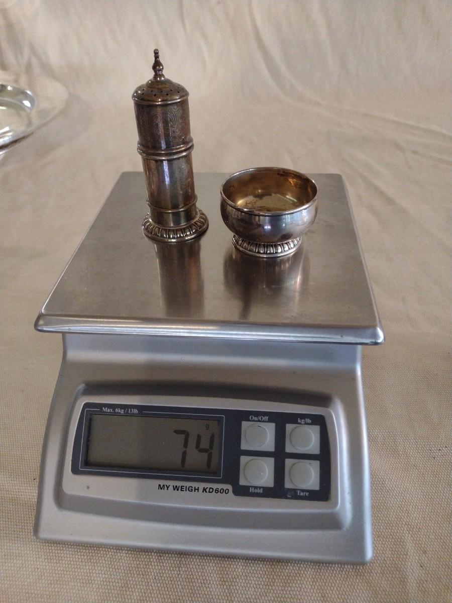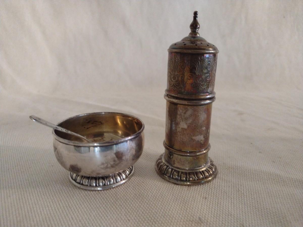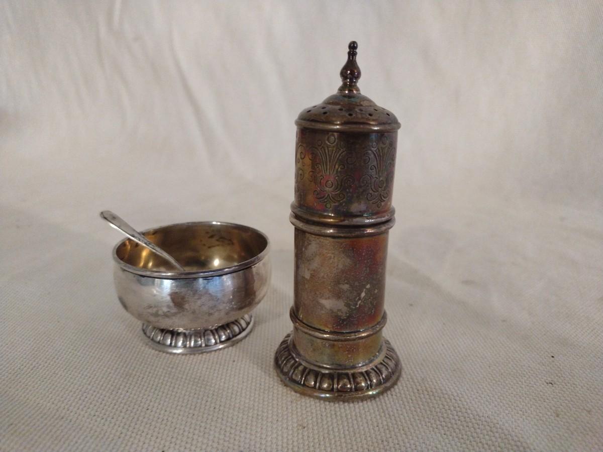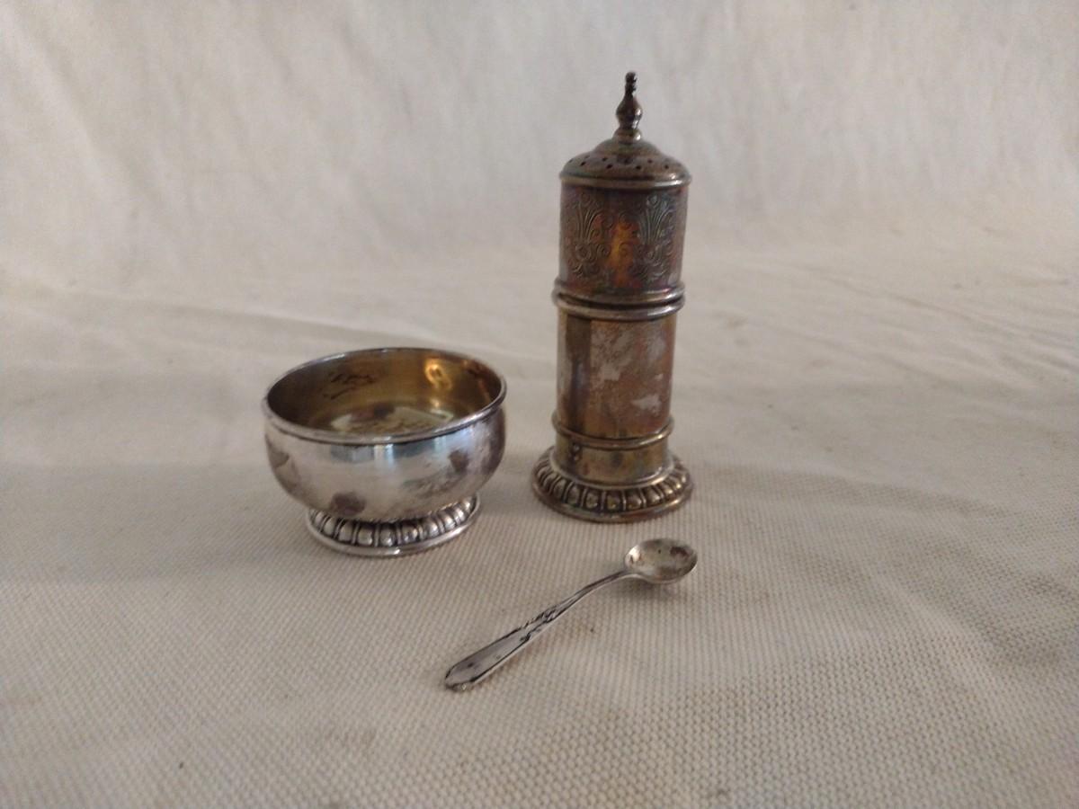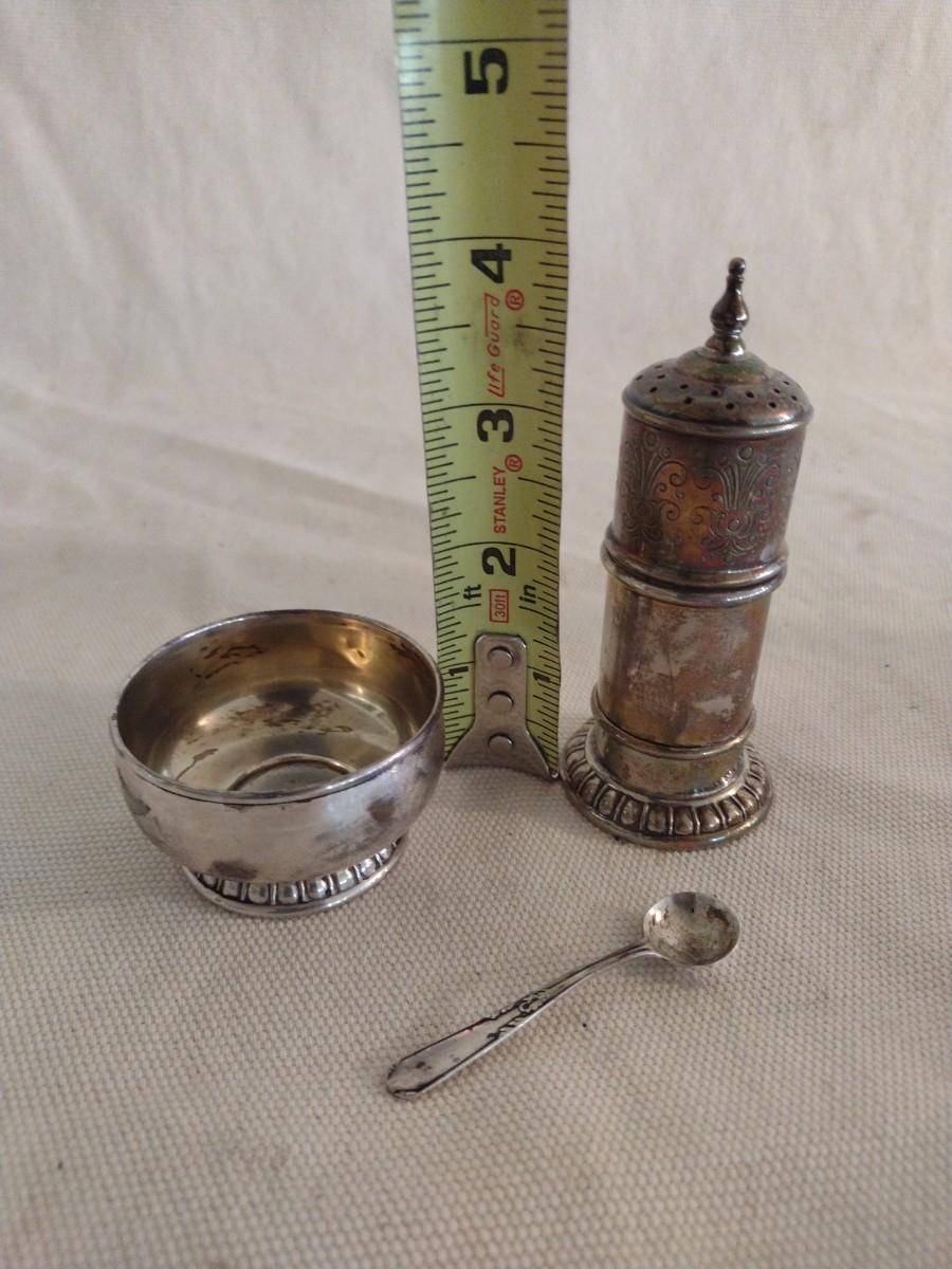 Antique Rogers, Lunt, and Bowlen Sterling Silver Pepper Shaker and Salt Cellar with Spoon Choice A 74 grams