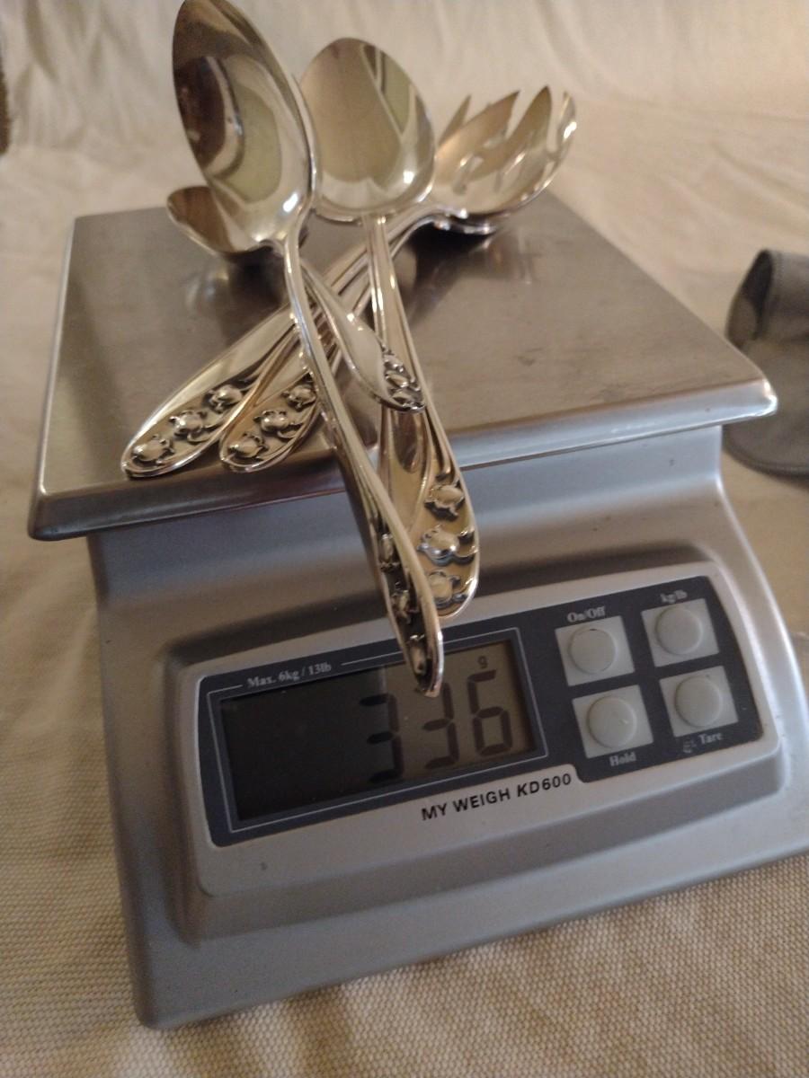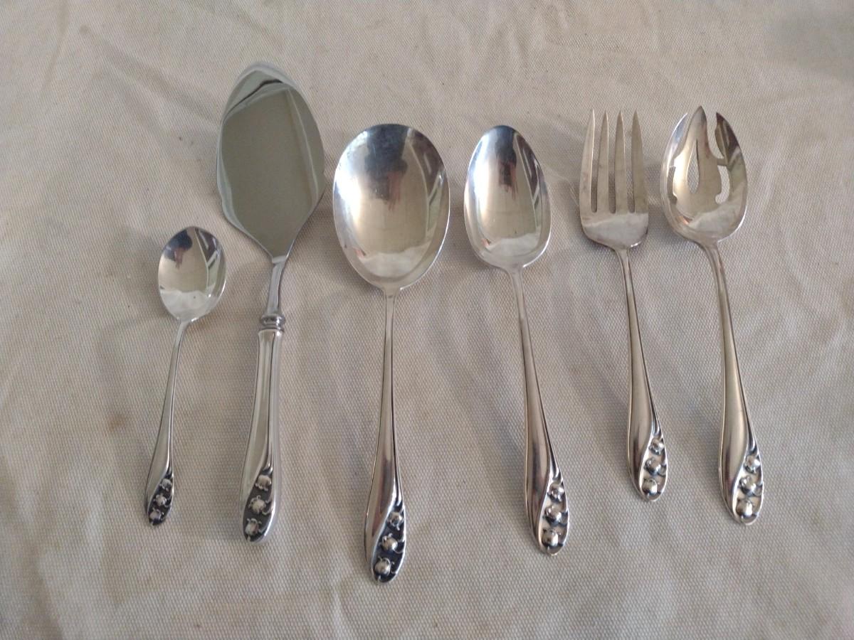 Vintage Gorham Rose Pattern Sterling Silver Service Flatware Six Piece Set 775 grams spatula is stainless and not considered in weight of the set