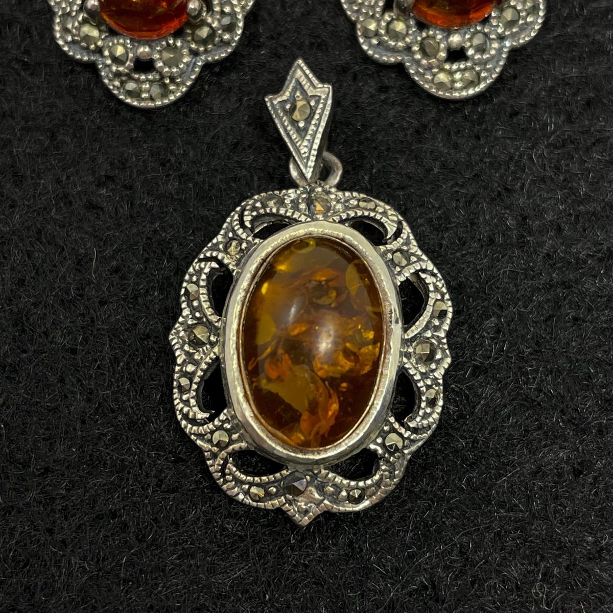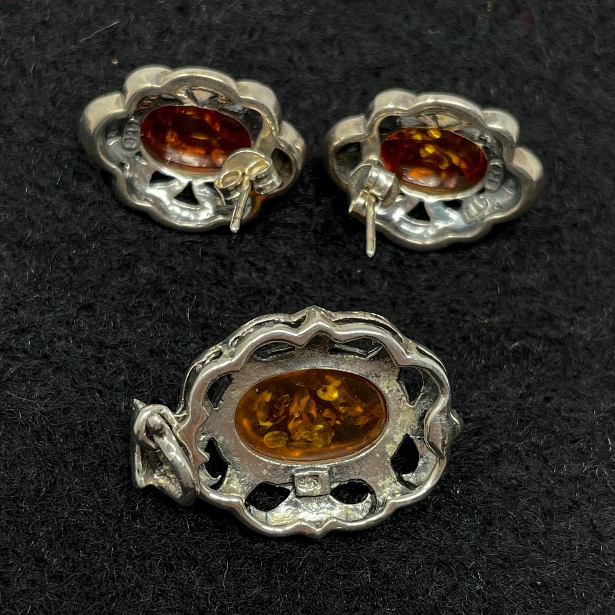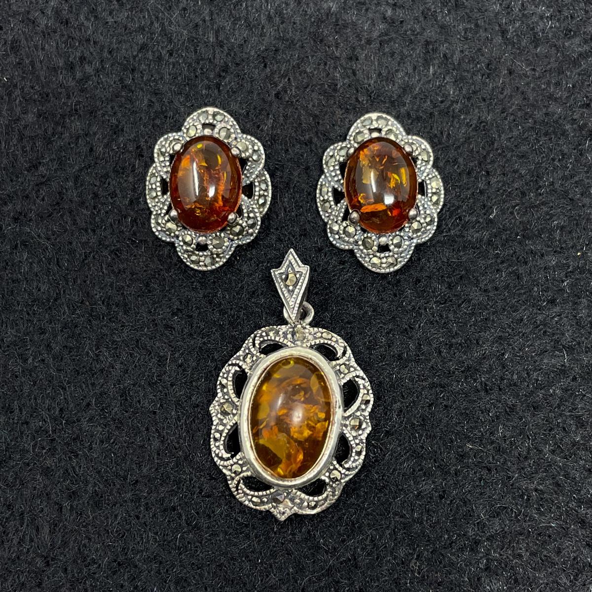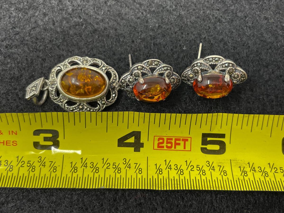 STERLING 925 & AMBER EARRING AND PENDANT SET