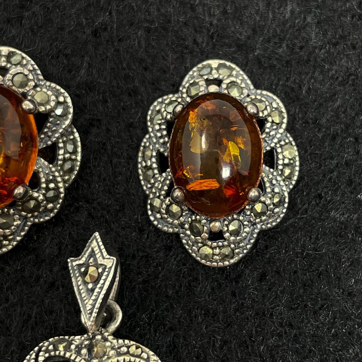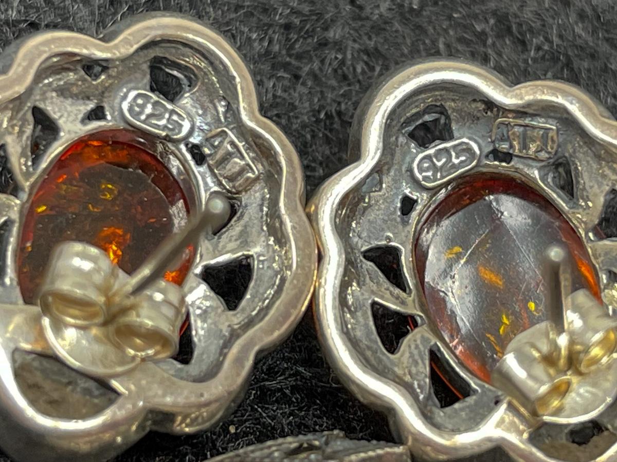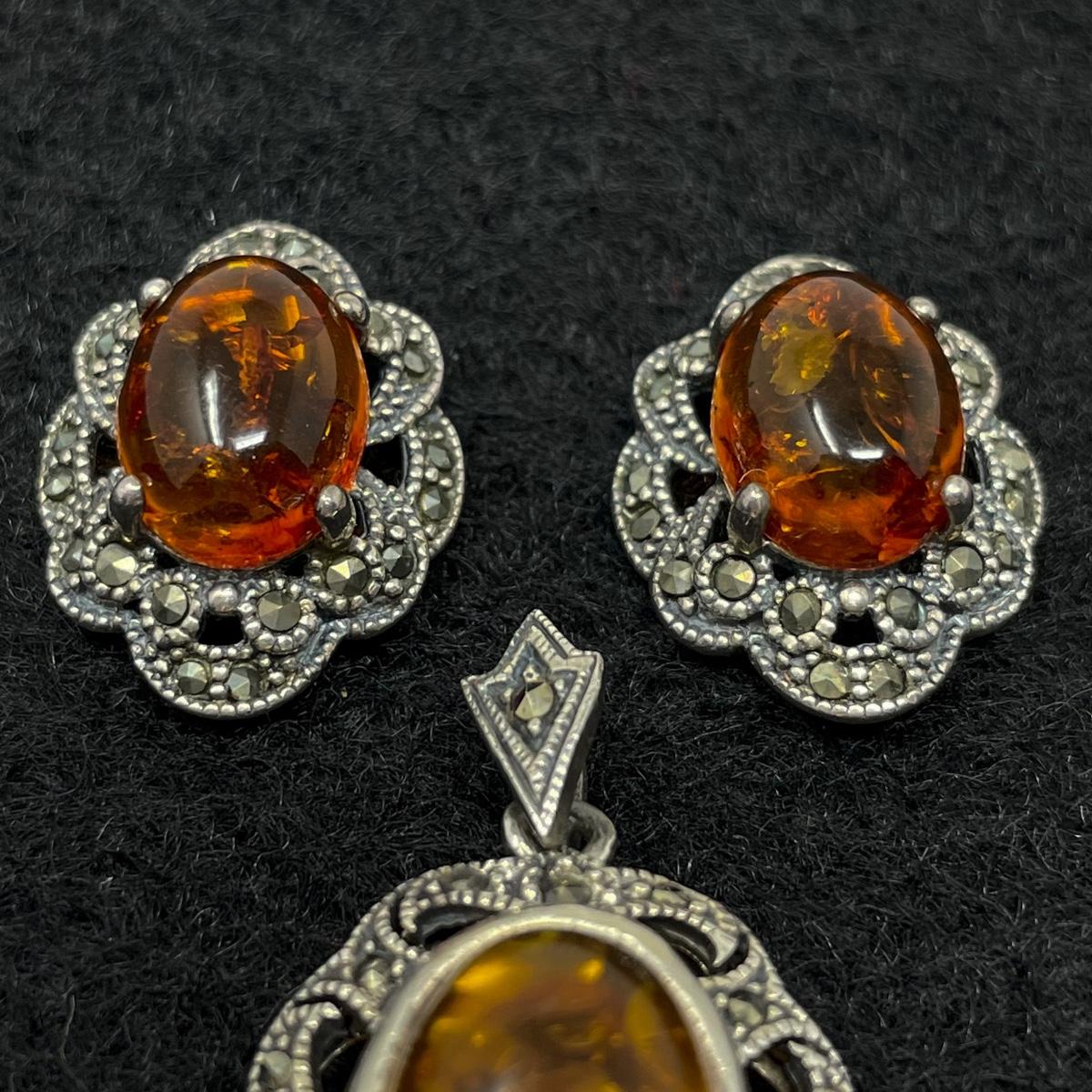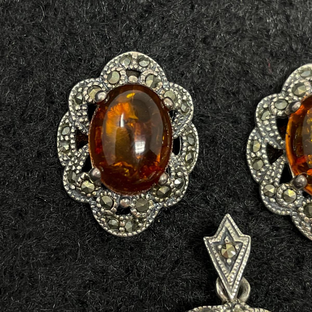STERLING 925 & AMBER EARRING AND PENDANT SET