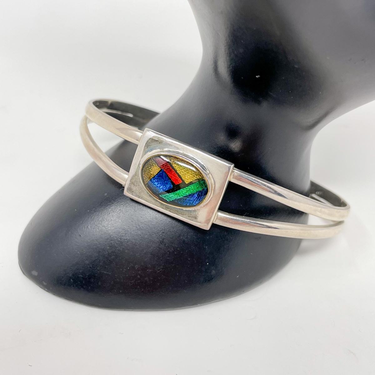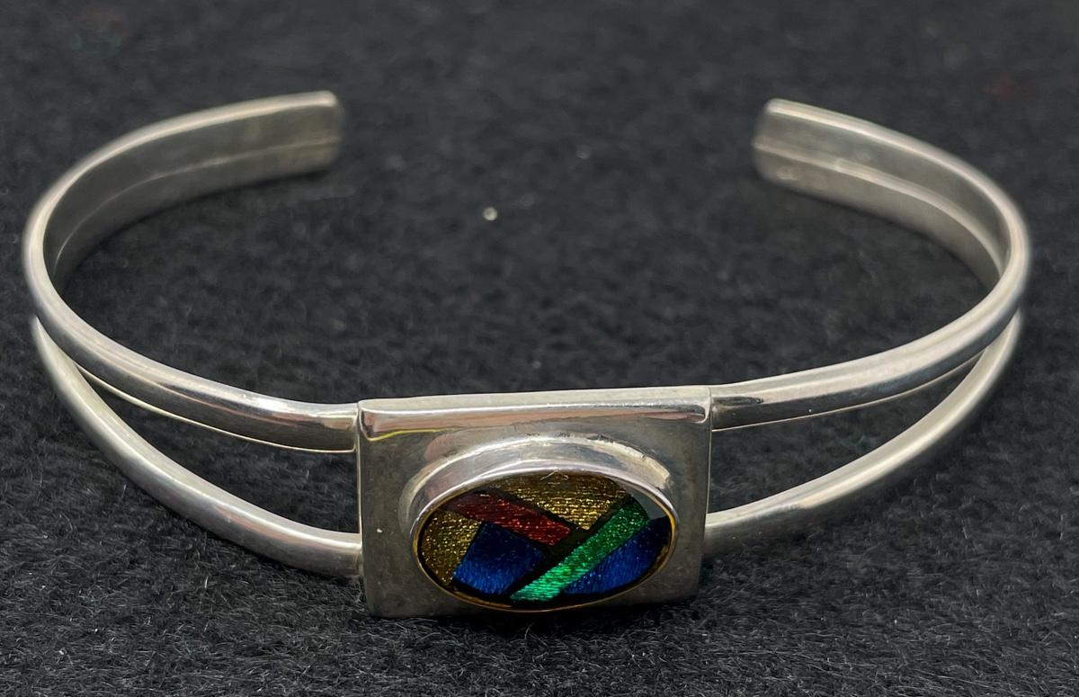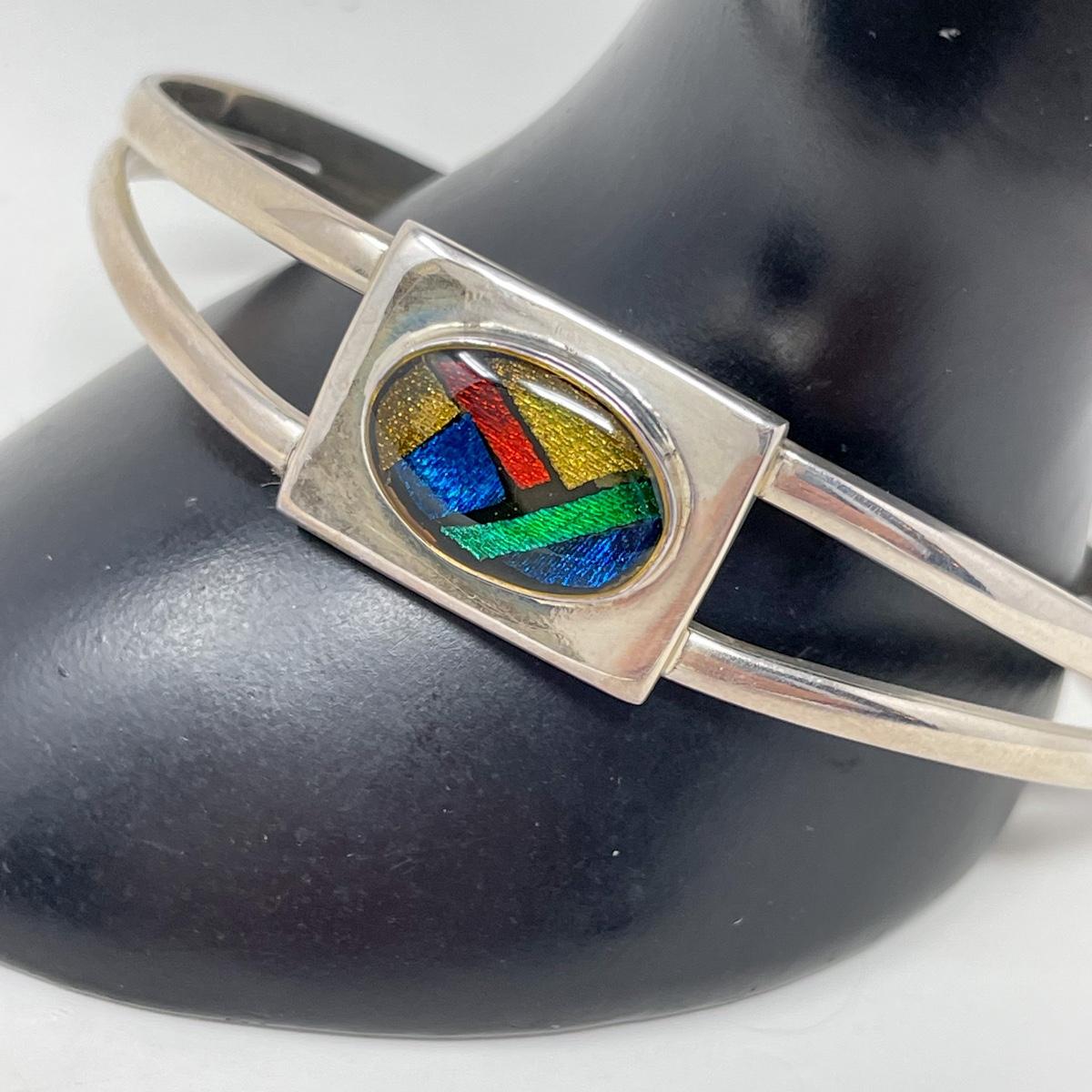 STERLING 925 & DICHROIC GLASS CUFF BRACELET - FROM MEXICO