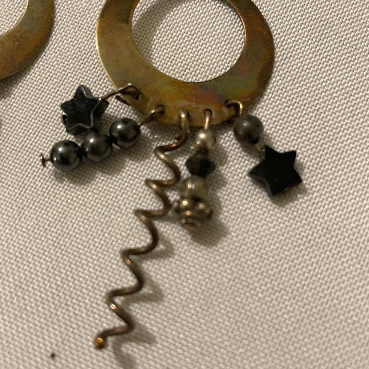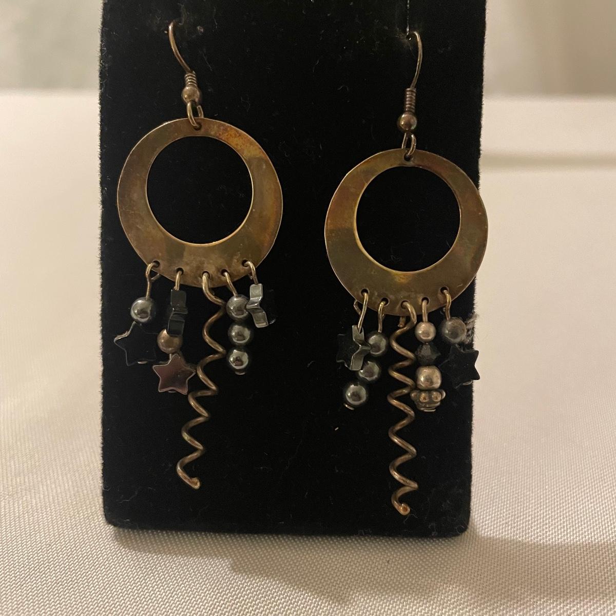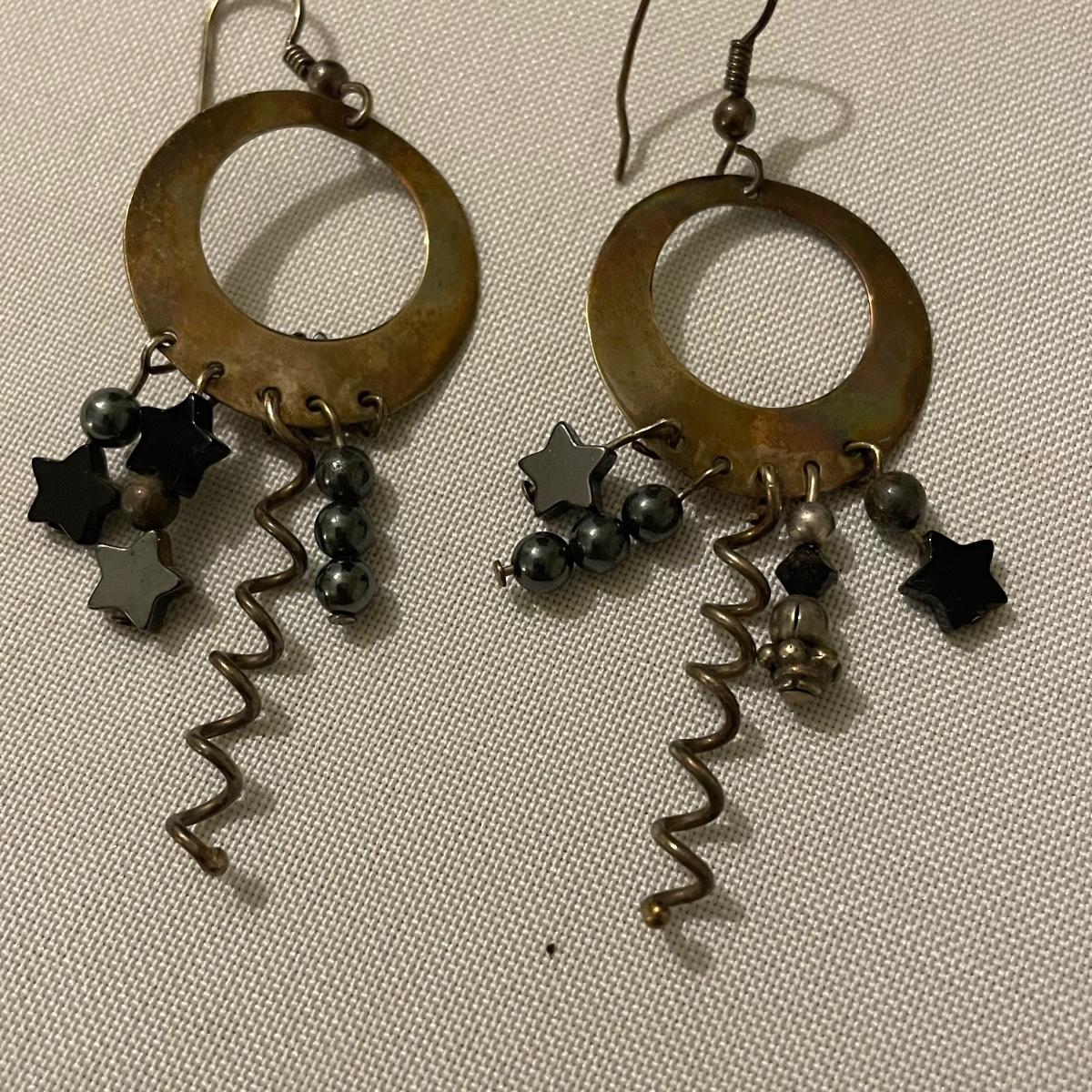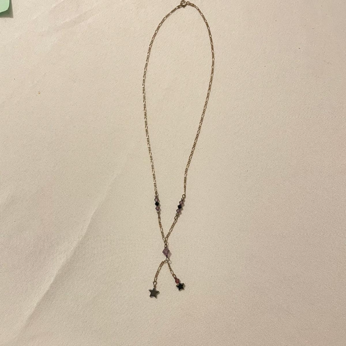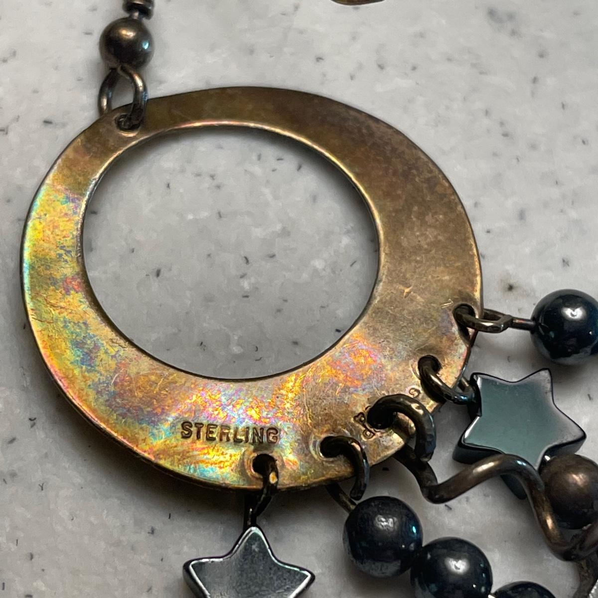 The necklace is marked 925 and has small black and amethyst colored beads including onyx colored stars which the earrings also have. The Sterling earrings have beads also and are post style for pierced ears. Necklace measures 18”.