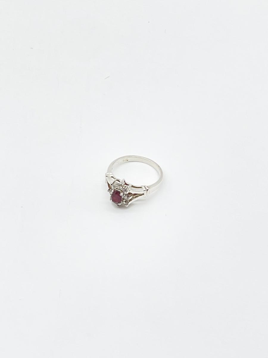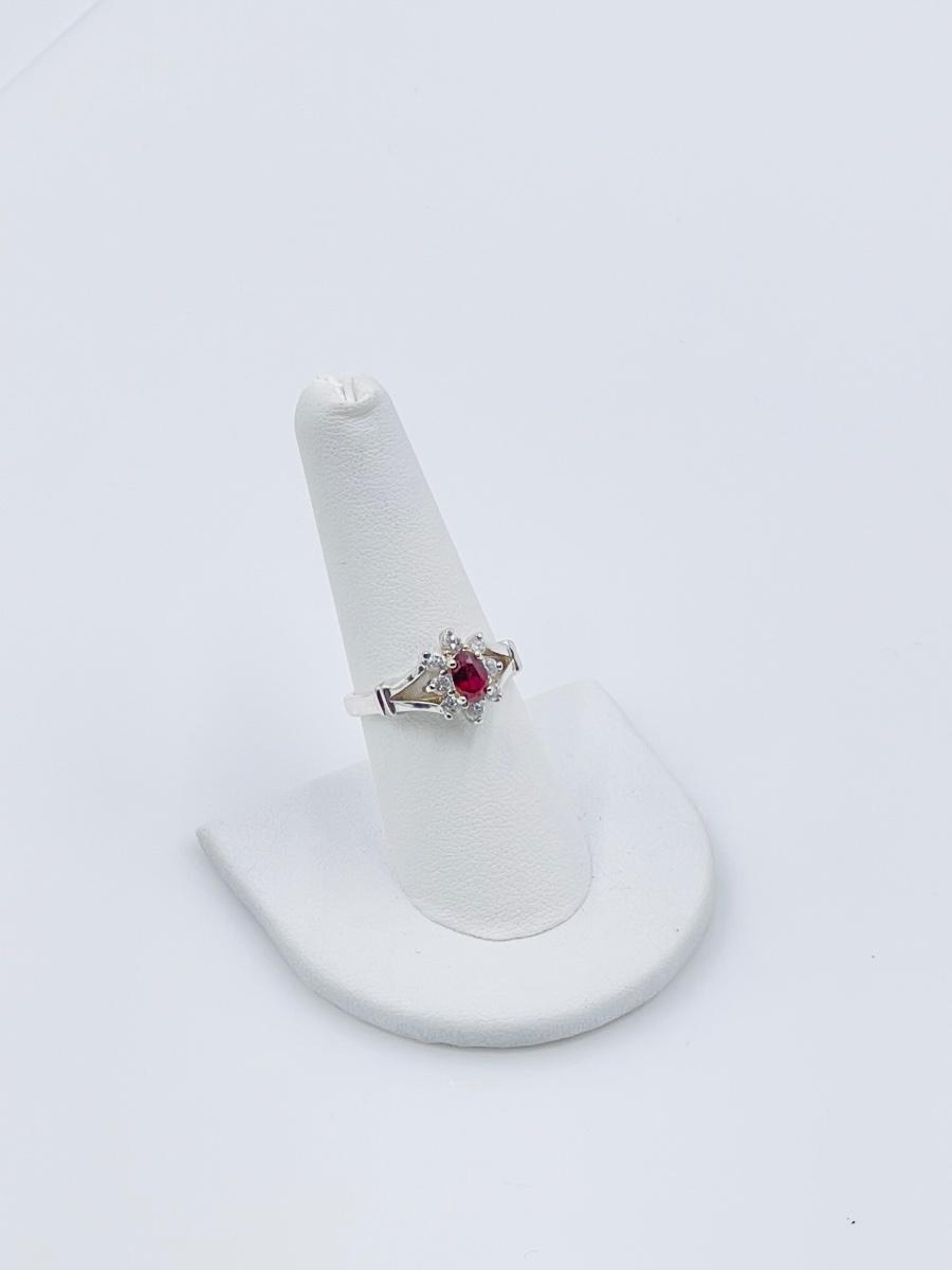 Sterling (925) ~ Oval Garnet & CZ Ring ~ Size 8