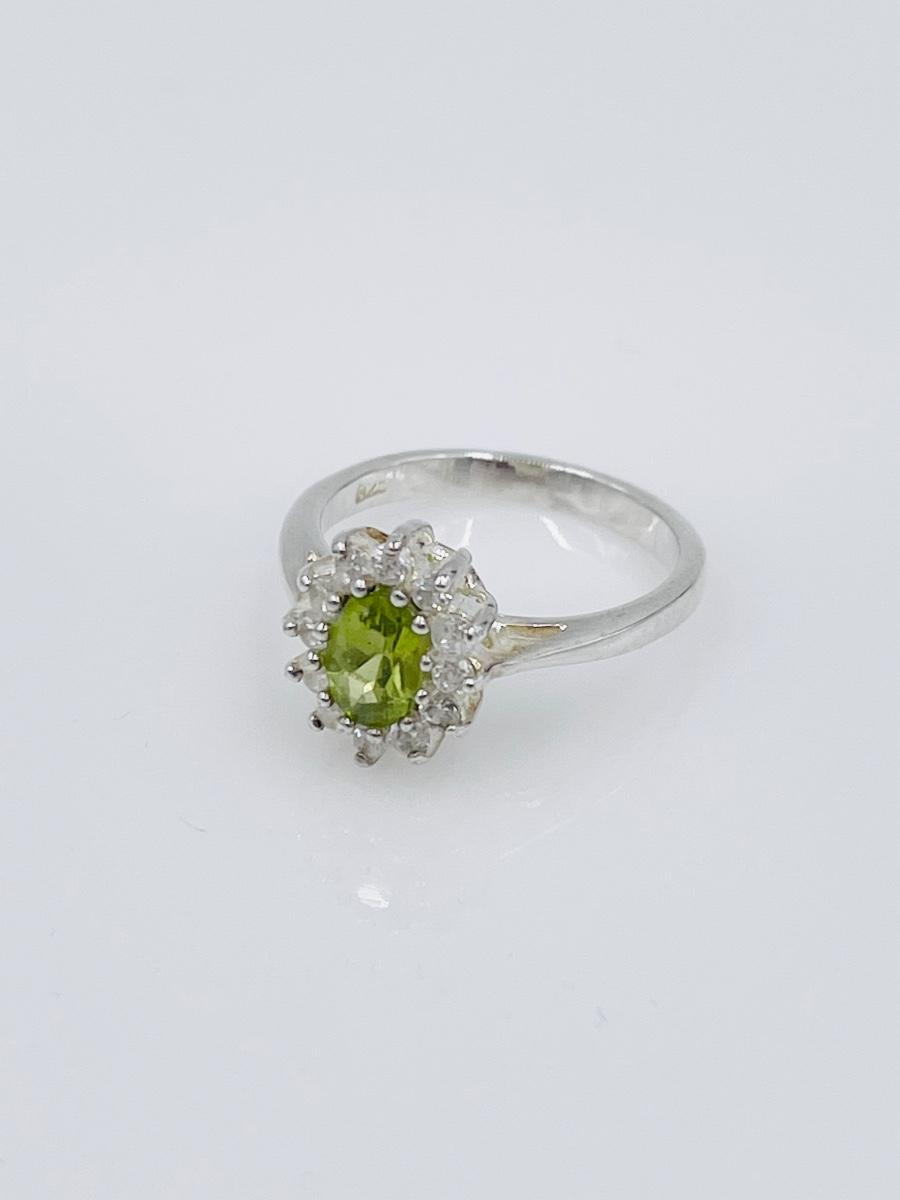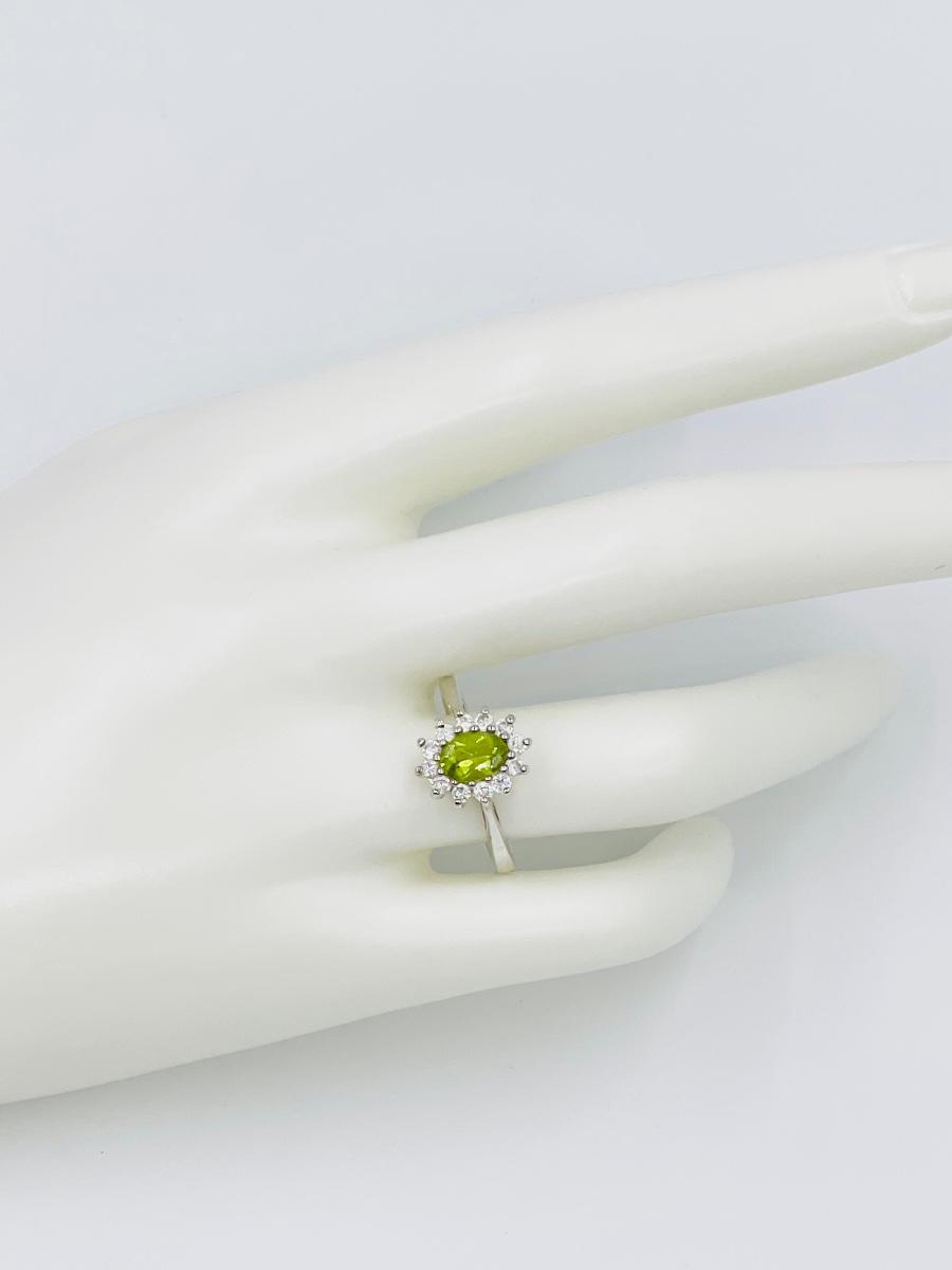 Sterling (925) ~ Oval Peridot & CZ Ring ~ Size 8