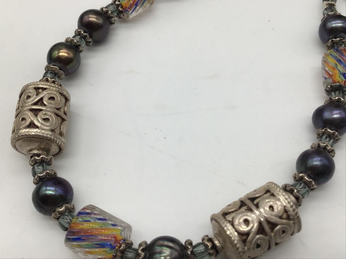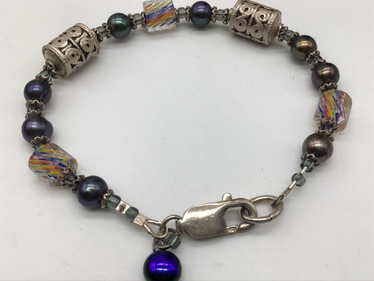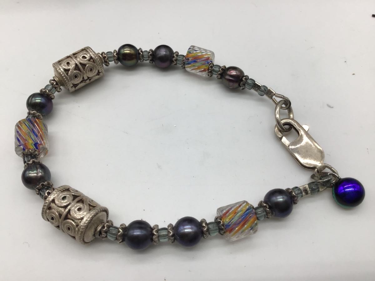 Sterling 925 Pearl and Rainbow 🌈 Glass Beaded Bracelet