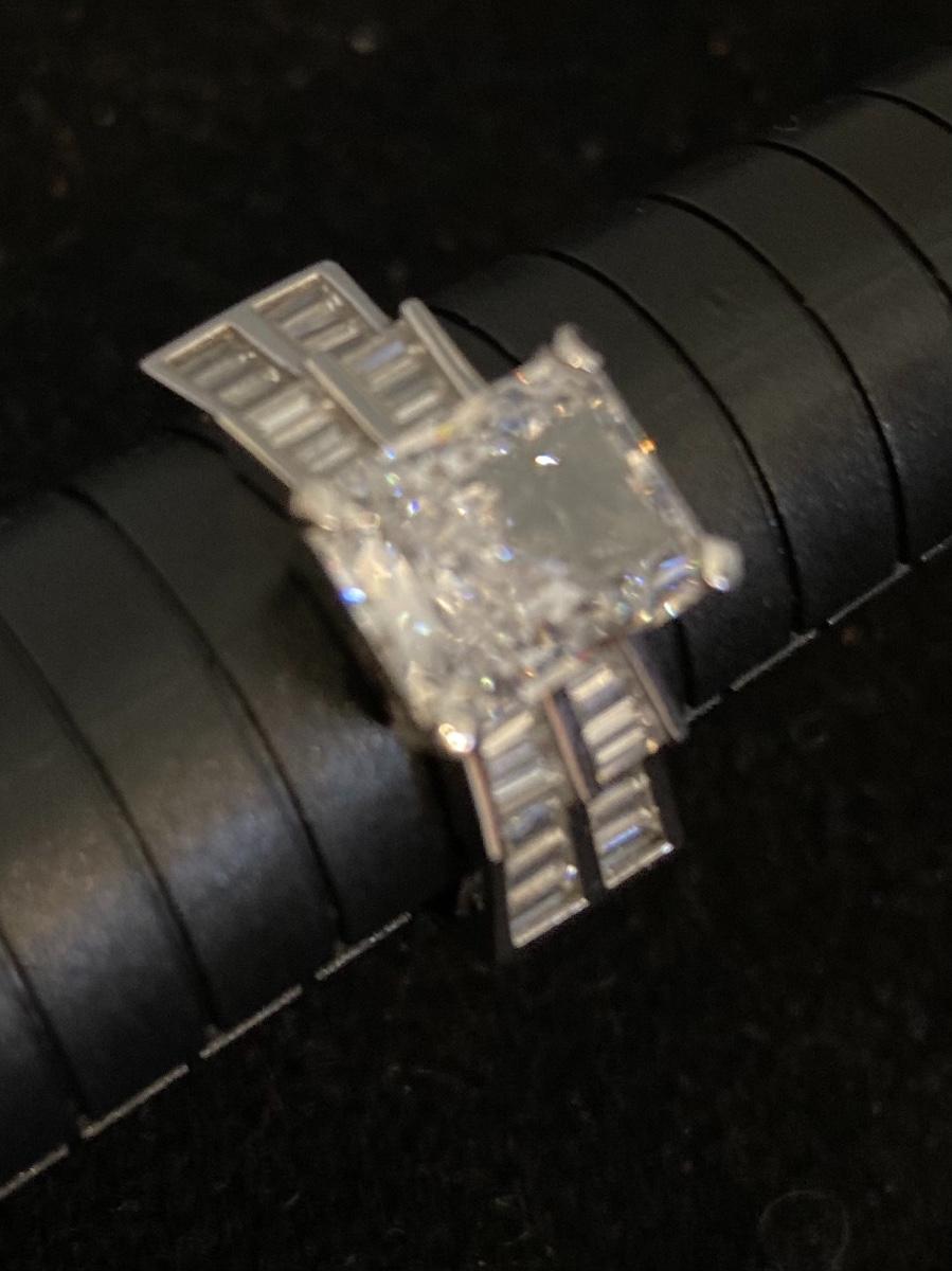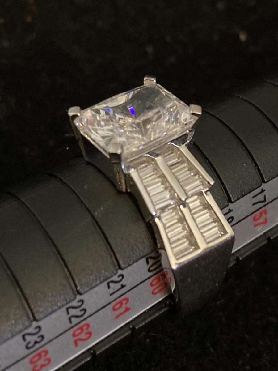 Center stone is approx 3 carats. Very good condition. Please see pictures for details. Packaging and shipping services available. Please contact us, if you need a shipping quote, before bidding.