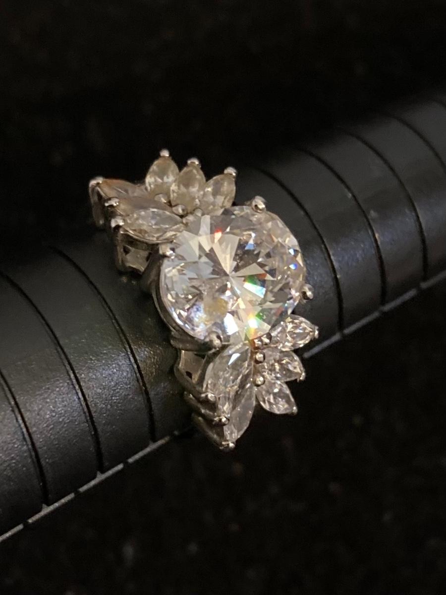 Center stone is approx 4 carats. Very good condition. Please see pictures for details. Packaging and shipping services available. Please contact us, if you need a shipping quote, before bidding.