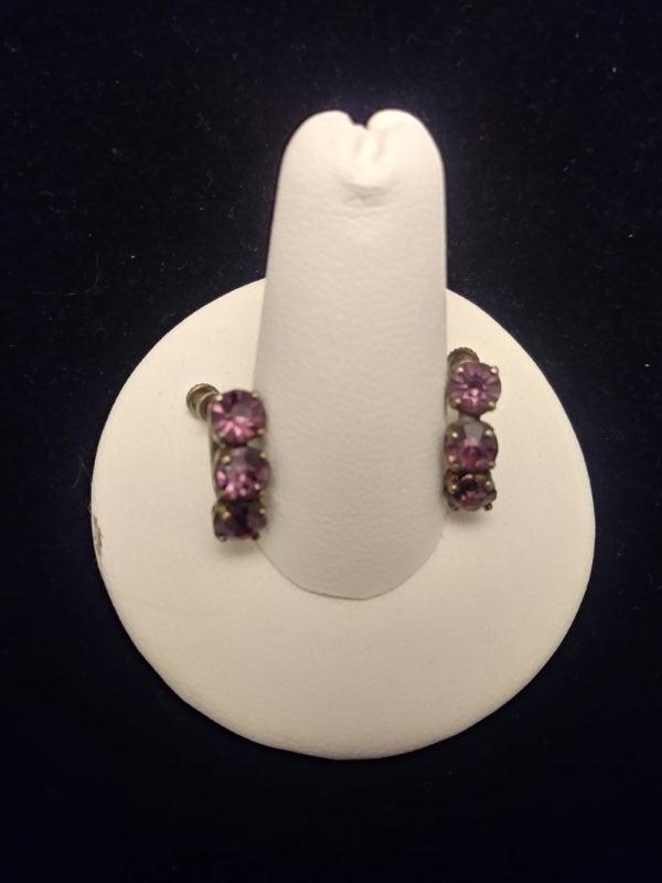 Sterling / Amethyst Colored Gem Earrings 1/2"L
