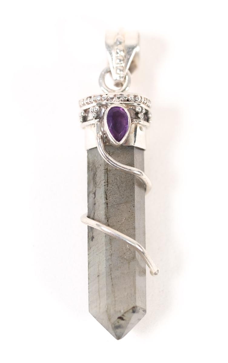 Sterling Amethyst & Labradorite Point Pendant. Stamped 925. Measures approx. 1.5". Weighs approx. 6 grams.