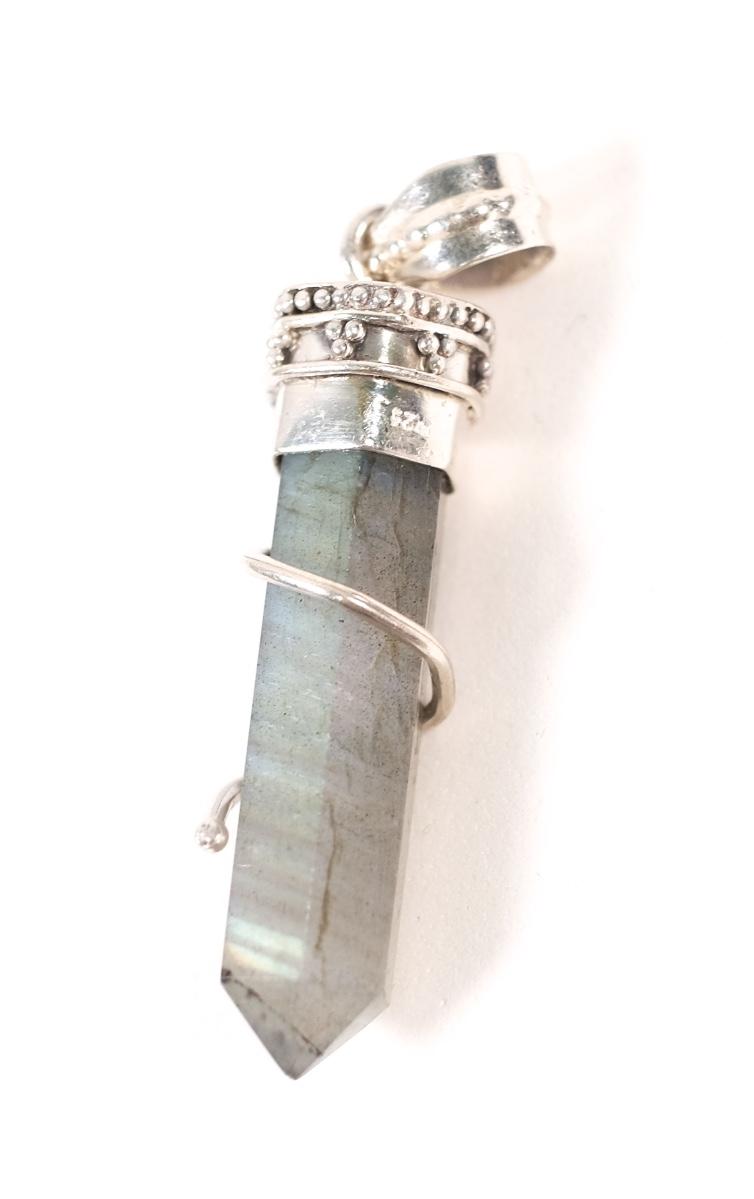 Sterling Amethyst & Labradorite Point Pendant. Stamped 925. Measures approx. 1.5". Weighs approx. 6 grams.