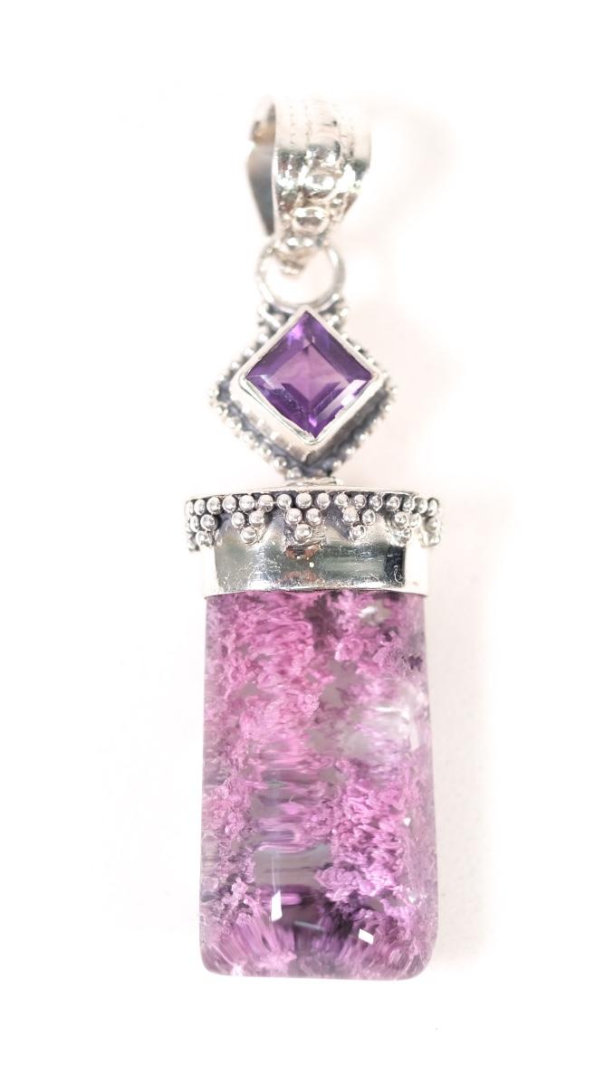 Sterling Amethyst Pendant. Stamped 925. Measures approx. 1.75". weighs approx. 6.4 grams.