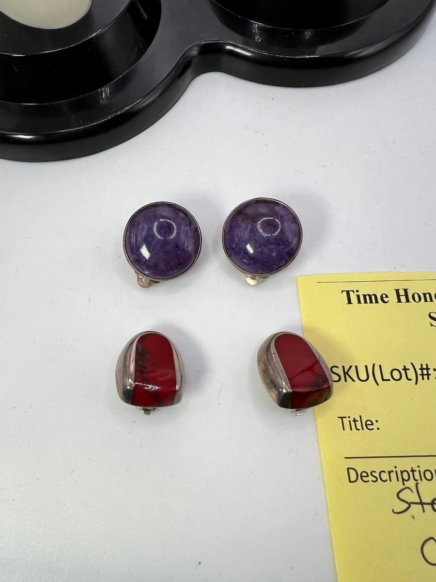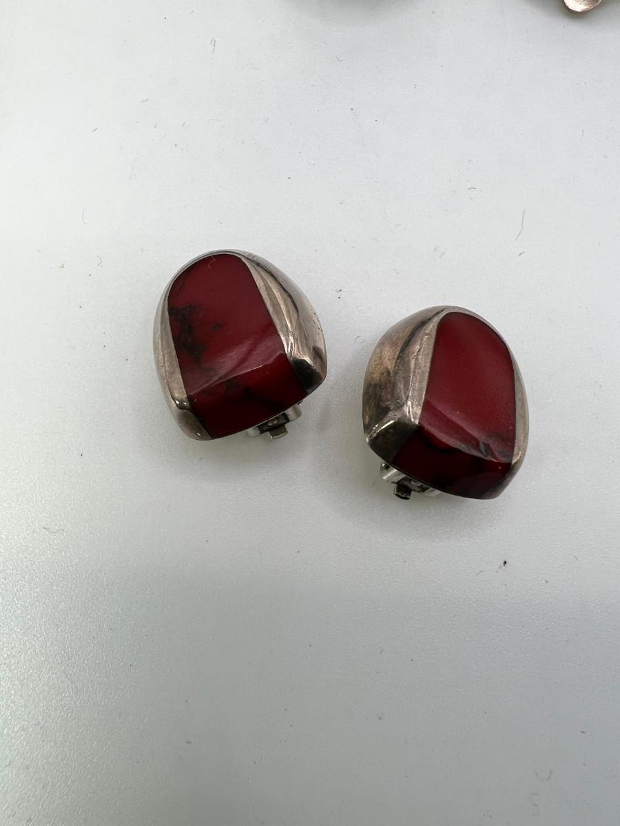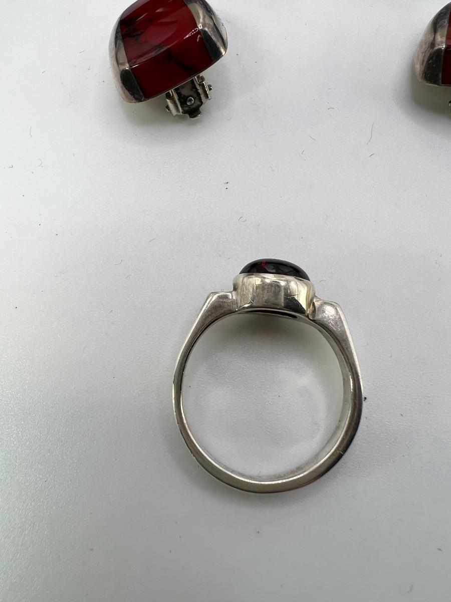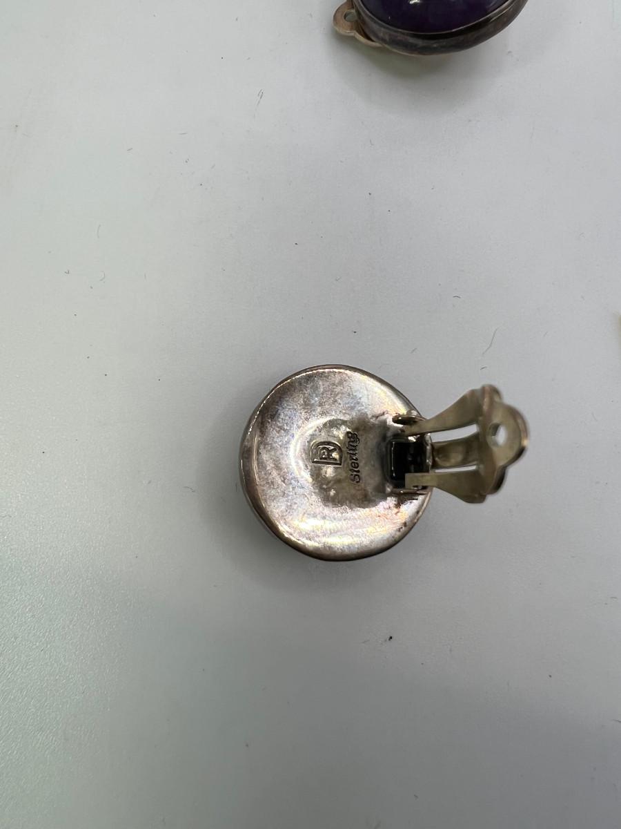 Sterling amethyst rings and clip on earrings, and red jasper clip ons
