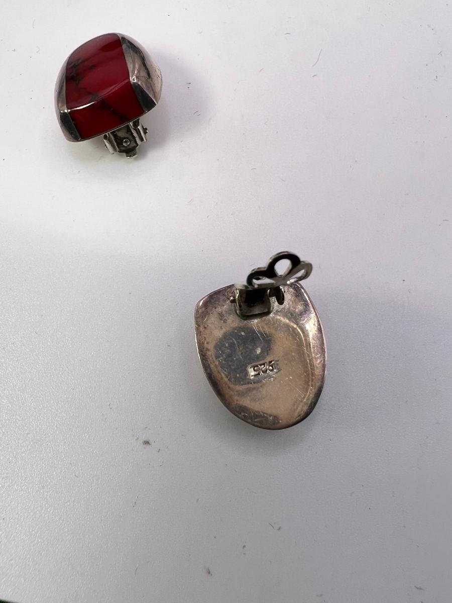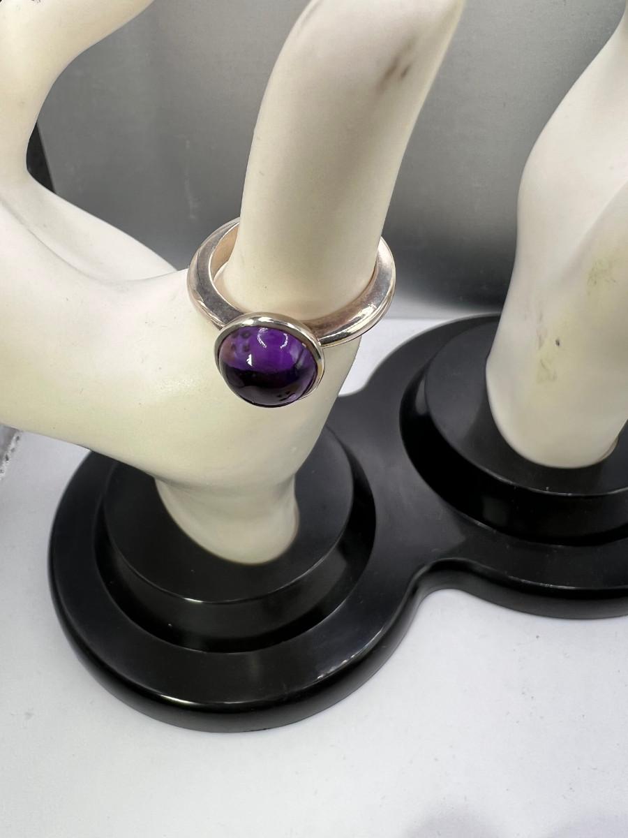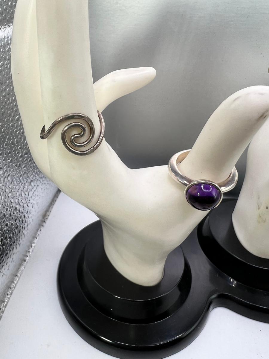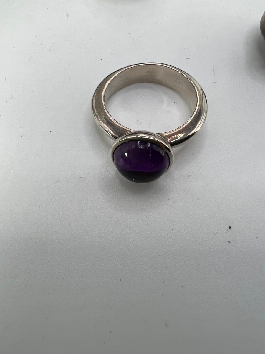 Sterling amethyst rings and clip on earrings, and red jasper clip ons