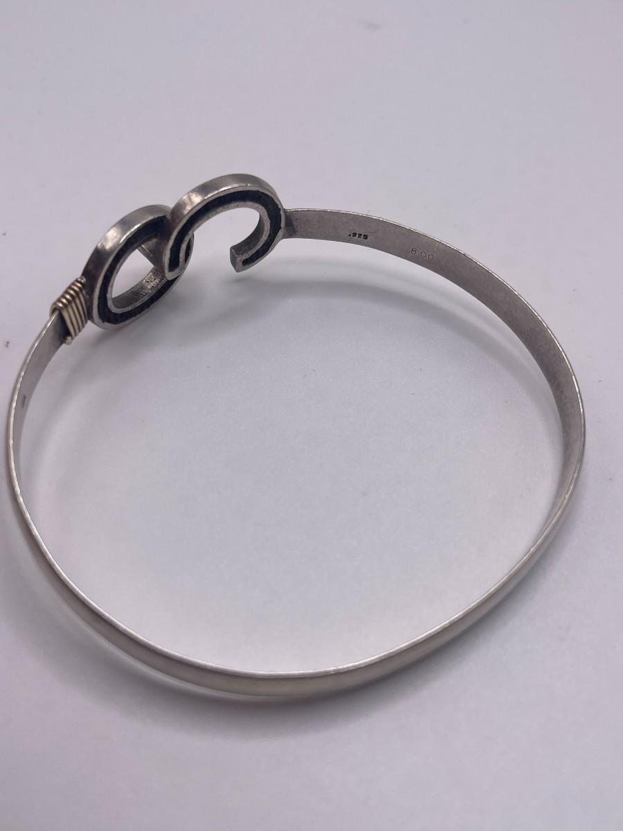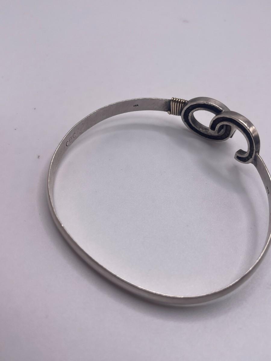 Sterling silver and 14k hook bracelet. Bracelet is mostly sterling with 14k highlights. good condition. Marked 925 and 14k. .65ozt