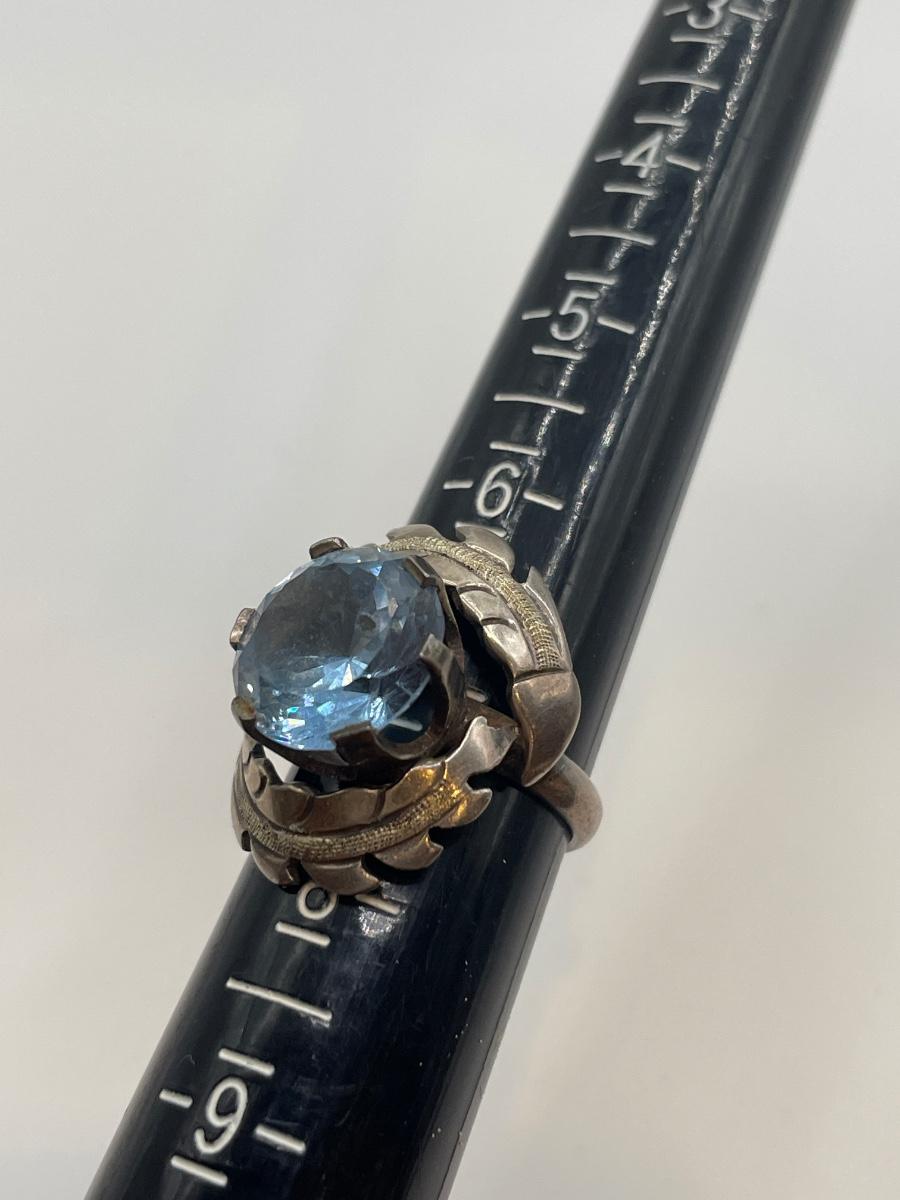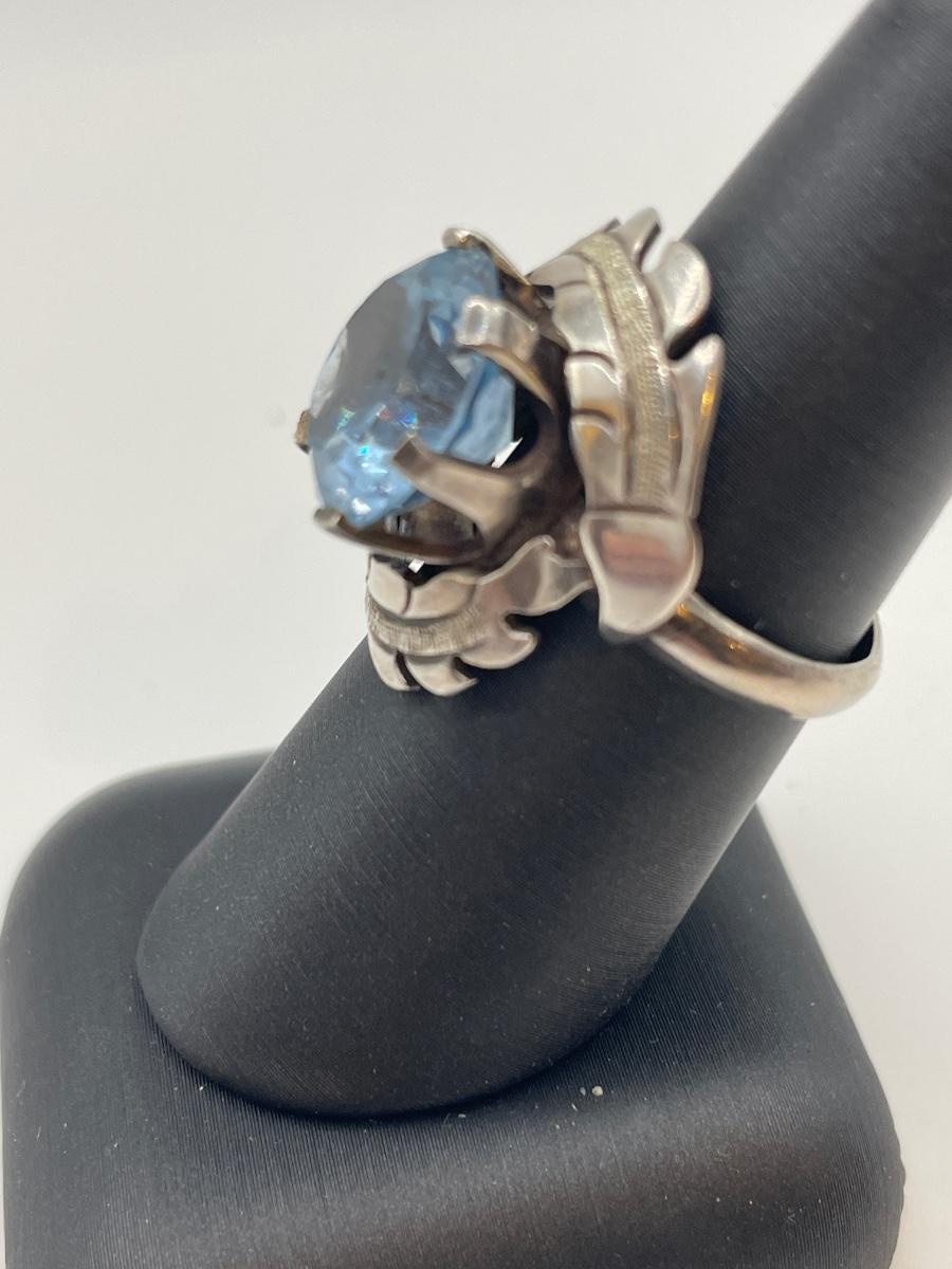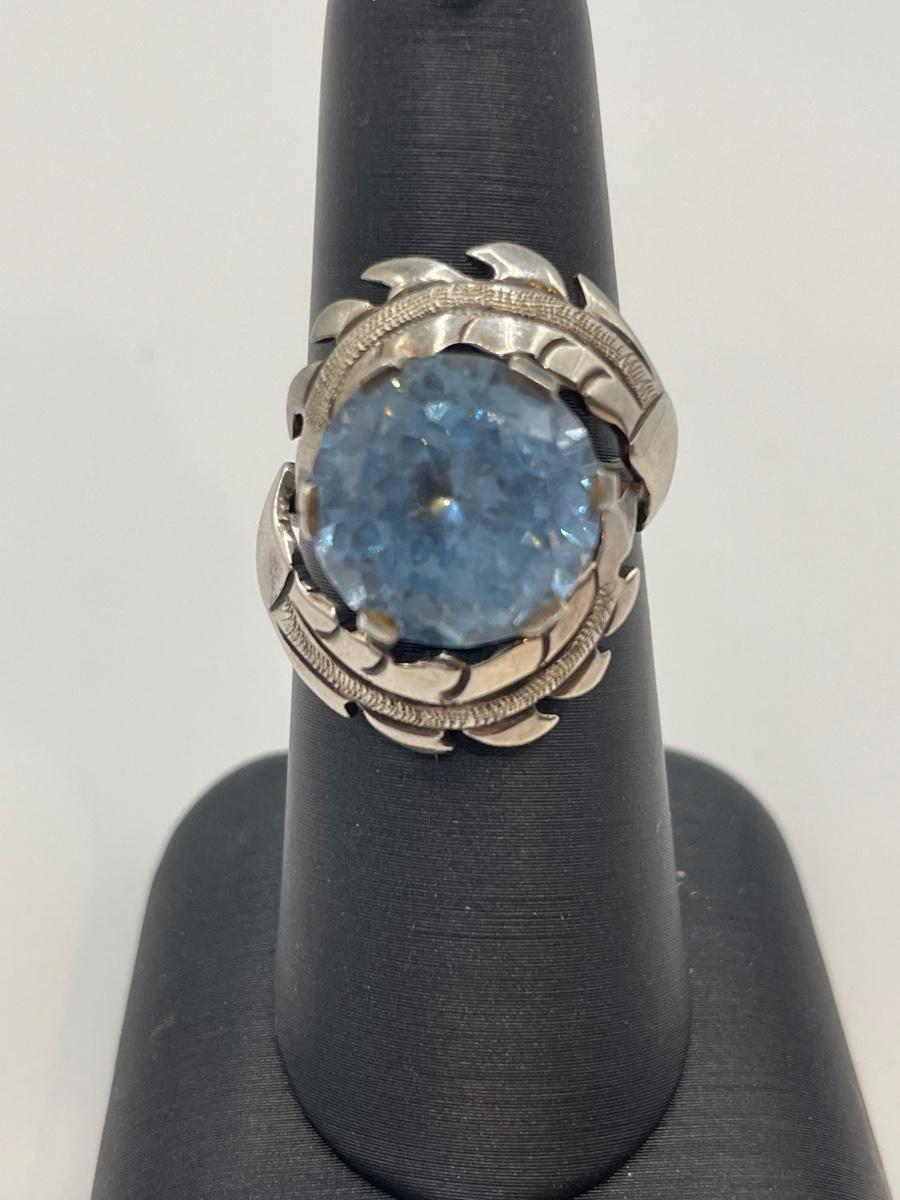 Sterling and large light blue stone ring