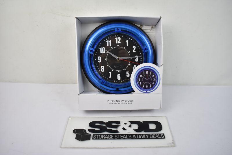 Sterling and Noble 11" Vibrant Blue Neon Analog Wall Clock, Retail $20 - New