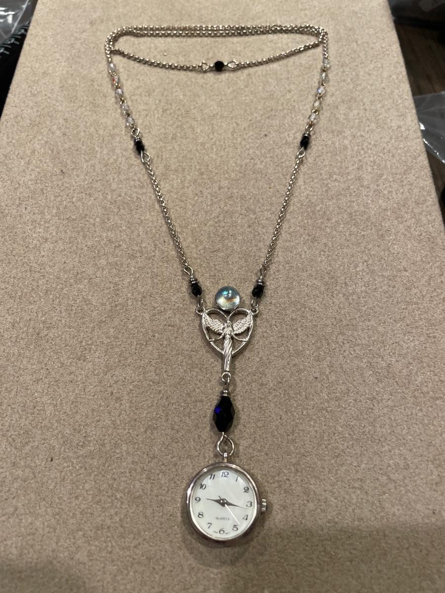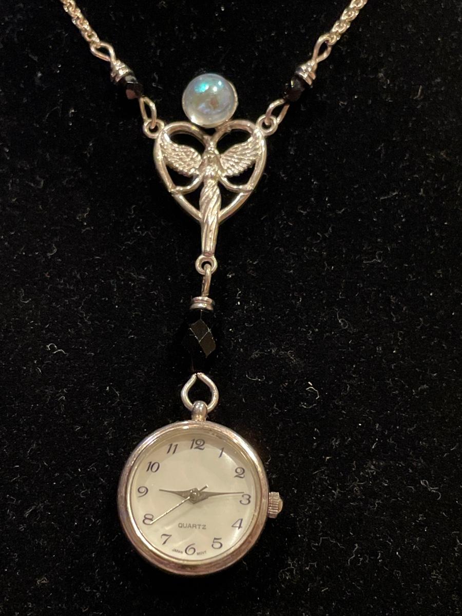Beautiful sterling and onyx necklace with clock