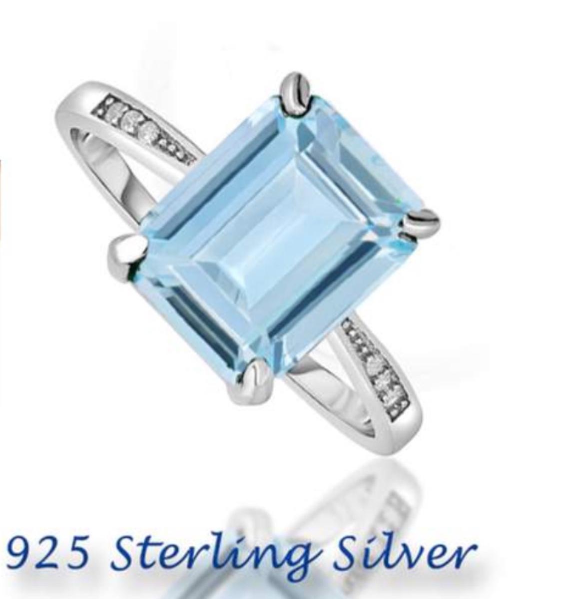 Beautiful 925 Sterling silver aquamarine colored Emerald cut l size 7
