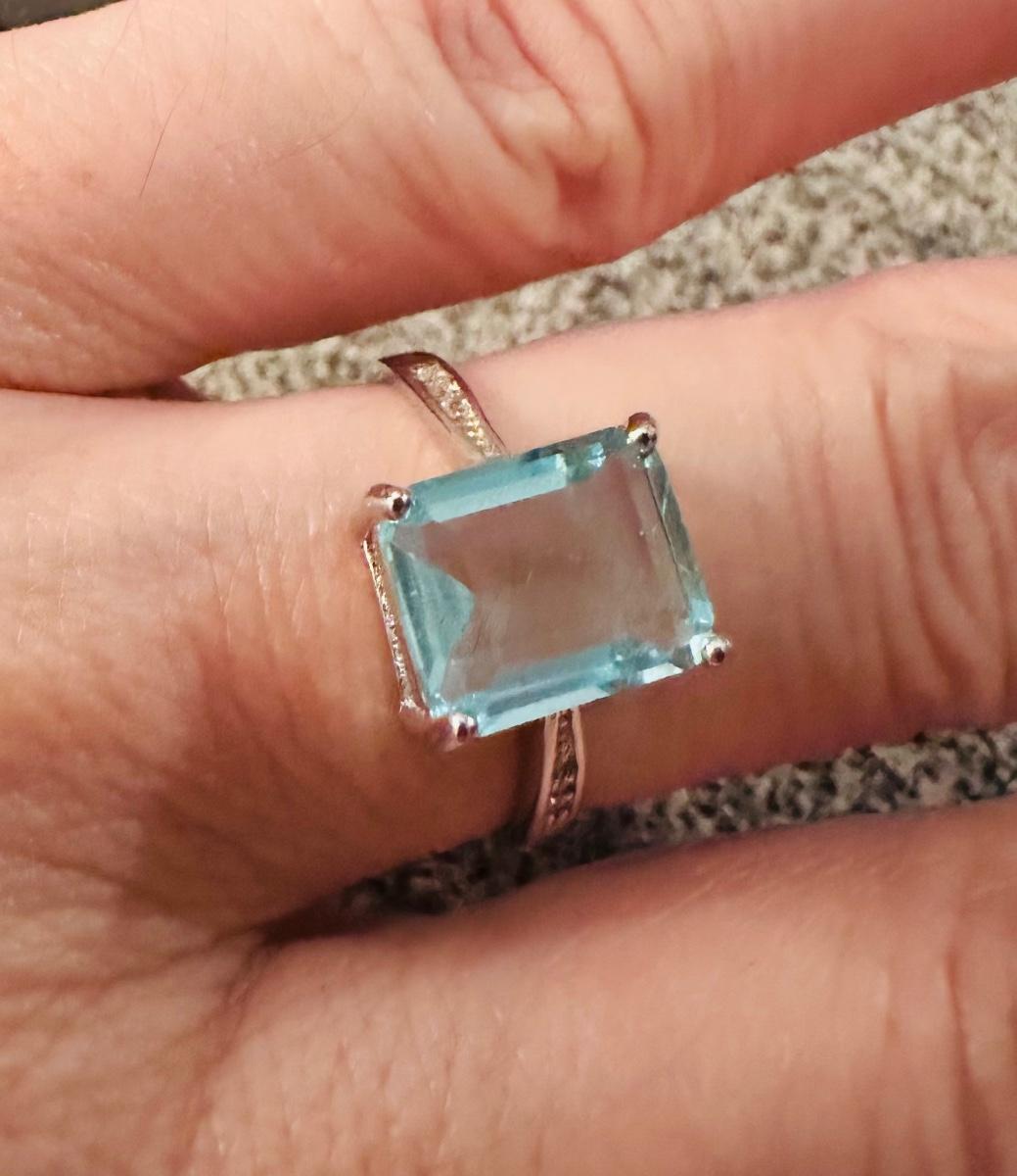 Beautiful 925 Sterling silver aquamarine colored Emerald cut l size 7